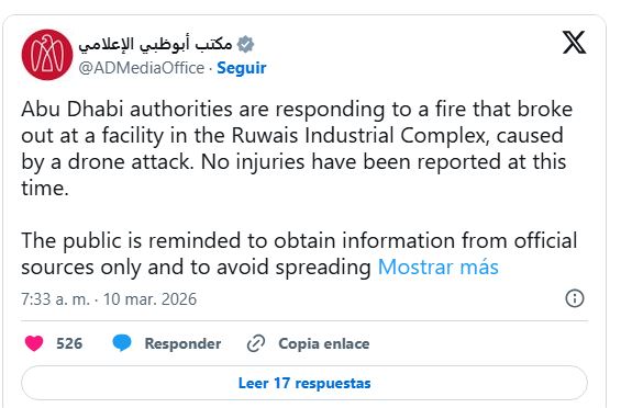 El ataque y la paralización de uno de los activos más emblemáticos de Abu Dhabi se suman a una serie de incidentes similares en Medio Oriente. Ruwais es la única refinería de Abu Dhabi y la mayor parte de su producción de gasolina, diésel y combustible para aviones se exporta, aunque una parte se destina al consumo interno. Arabia Saudita cerró la semana pasada su mayor refinería y Qatar clausuró la mayor planta de exportación de gas natural licuado del mundo tras ataques con drones.