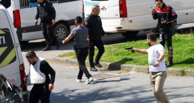 Según la emisora Haberturk, los atacantes portaban armas de cañón largo. Inicialmente, se informó que en el tiroteo dos personas murieron y un tercer agresor fue capturado; posteriormente, la cifra fue actualizada: un agresor abatido y otros dos heridos en el intercambio con los cuerpos de seguridad. También dos policías resultaron “levemente heridos”. Un video de Reuters muestra a un agente sacando su arma y poniéndose a cubierto mientras se escuchan disparos, y a una persona cubierta de sangre.