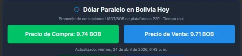 Por su parte, el sitio bolivianblue.net, que actualiza sus datos en tiempo real, confirmó esta tendencia: después de situarse en Bs 9,76 al mediodía, cerró el día en Bs 9,74 para la compra y Bs 9,72 para la venta.