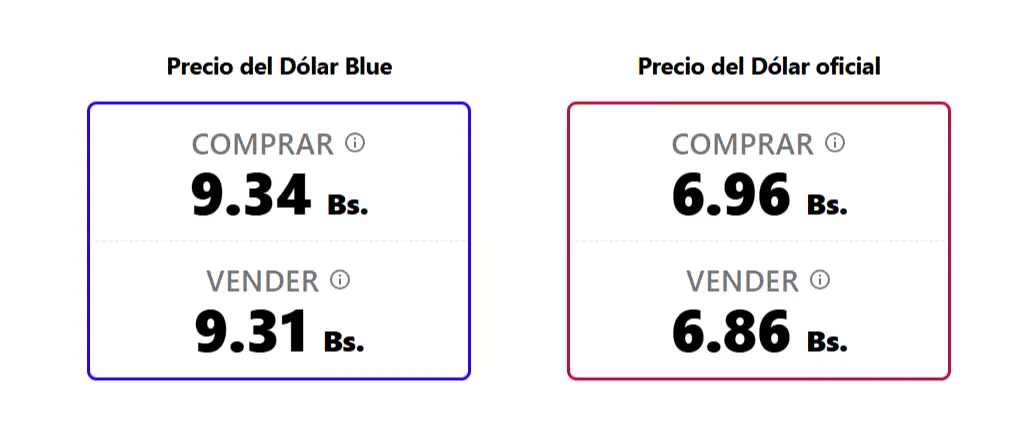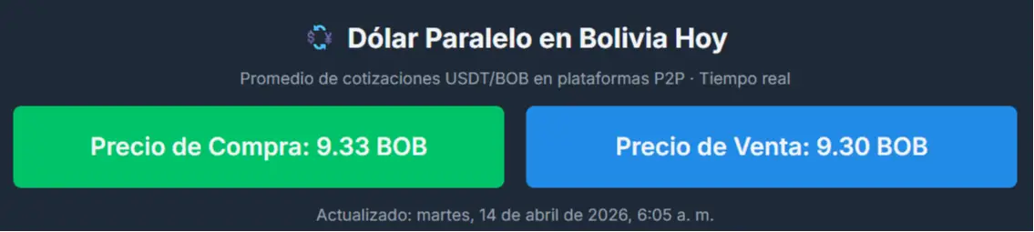 Por su parte, bolivianblue.net reporta una cotización de Bs 9,34 para la compra y Bs 9,31 para la venta, también con una leve subida frente al cierre del lunes.
