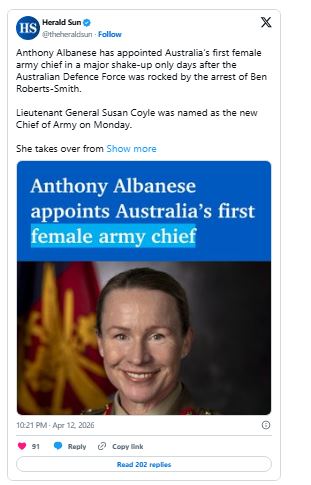 «Su logro significa que será la primera mujer en comandar una rama militar en la historia australiana», declaró Marles a periodistas. «Y es un momento profundamente histórico».