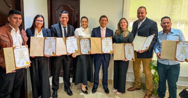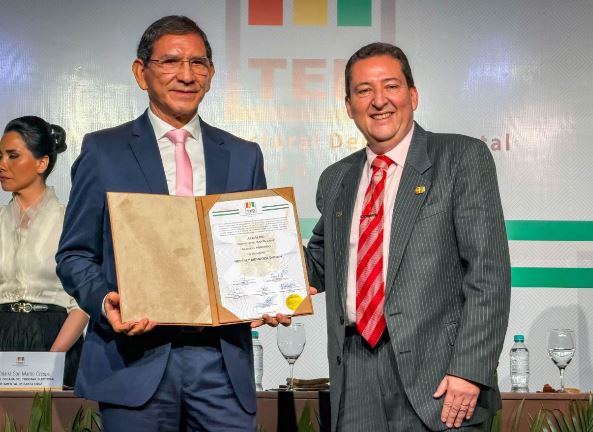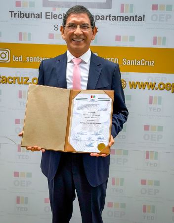 El alcalde electo, Neptaly Mendoza, junto a los concejales de Porongo, recibió este martes sus credenciales oficiales otorgadas por el Tribunal Electoral Departamental de Santa Cruz (TED), en un acto desarrollado en el salón Chiquitano de la Feria Expocruz.