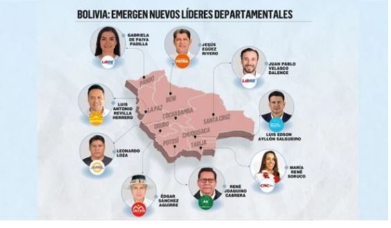 Los resultados de la primera y segunda vuelta electoral para las gobernaciones dejan a Bolivia con un mapa político diverso y fragmentado. Siete frentes y alianzas sientan presencia en las nueve gobernaciones, también con siete nuevos liderazgos que representan otra generación de políticos frente a dos decanos asentados en La Paz y Potosí.