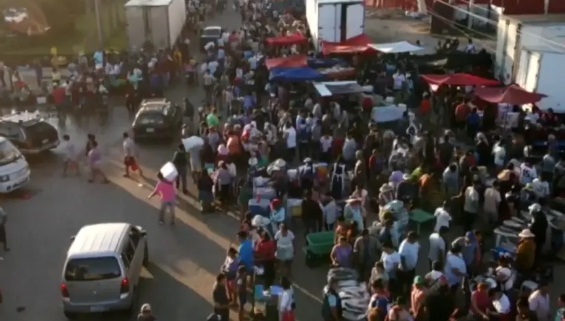 Imágenes aéreas captadas por el dron de UNITEL muestran a cientos de compradores acudiendo a los puestos de venta instalados en la vía pública, mientras que camiones que venden pescado importado bloquean la circulación.