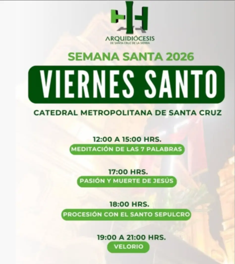 La Semana Santa se vive con alta participación en Santa Cruz de la Sierra, donde los fieles conmemoran el Viernes Santo con actividades religiosas marcadas por la reflexión y la tradición.