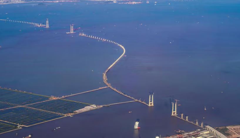 El puente sobre el río Perla en la bahía Guangdong-Hong Kong-Macao que une las ciudades de Shenzhen y Zhongshan se ha convertido en la primera infraestructura marítima que mezcla puentes, islas artificiales, un túnel y un intercambiador submarino en sus 24 kilómetros recorrido. Recibirá una media de 86 mil vehículos cada día, con momentos de máxima capacidad de 181 mil vehículos. El puente reduce el tiempo de viaje entre las dos ciudades del sur de China de dos horas a 30 minutos.