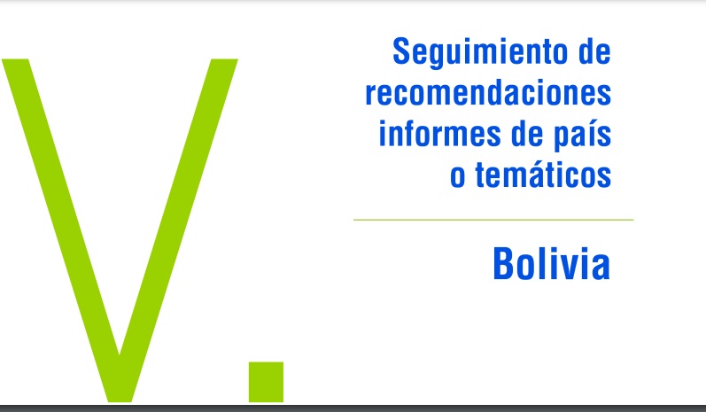 Sobre el cumplimiento de 32 recomendaciones realizadas al Estado boliviano se “identifica avances parciales en más del 40% de ellas y la necesidad de continuar progresando en el 56% restante”.