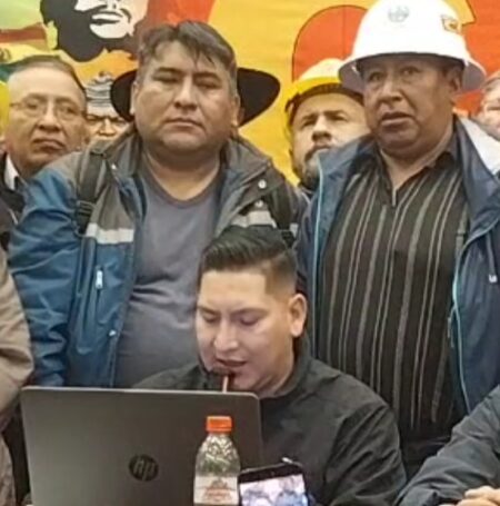 El ampliado nacional de la Central Obrera Boliviana (COB) resolvió este martes por la tarde declarar «persona no grata» al ministro de Economía, José Gabriel Espinoza, asimismo cuestionan la política económica implementada por el Gobierno. La resolución es uno de los 12 puntos aprobados en el encuentro nacional, del que incluso dijeron que servirá de base para el cabildo convocado para este viernes 1 de mayo, que se realizará cerca al Teleférico Rojo, en la ciudad de El Alto.