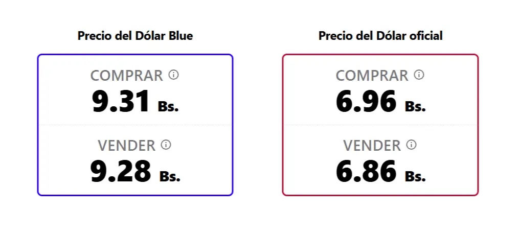 Según esta plataforma, el dólar paralelo se sitúa en Bs 9,31 para la compra y Bs 9,28 para la venta.