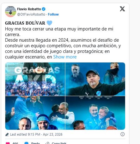 El cierre de un ciclo siempre deja emociones. Flavio Robatto rompió el silencio tras su salida de Bolívar y publicó un mensaje de despedida cargado de agradecimiento, orgullo y balance por su paso en la institución paceña.