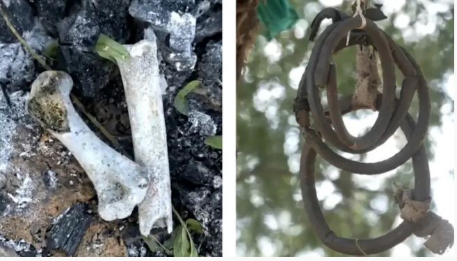 En un recorrido realizado por un equipo de prensa de Red Uno se evidenció la presencia de restos de ropa incinerada, carbón, botellas y huesos pequeños, lo que refuerza la sospecha de sacrificios de animales.