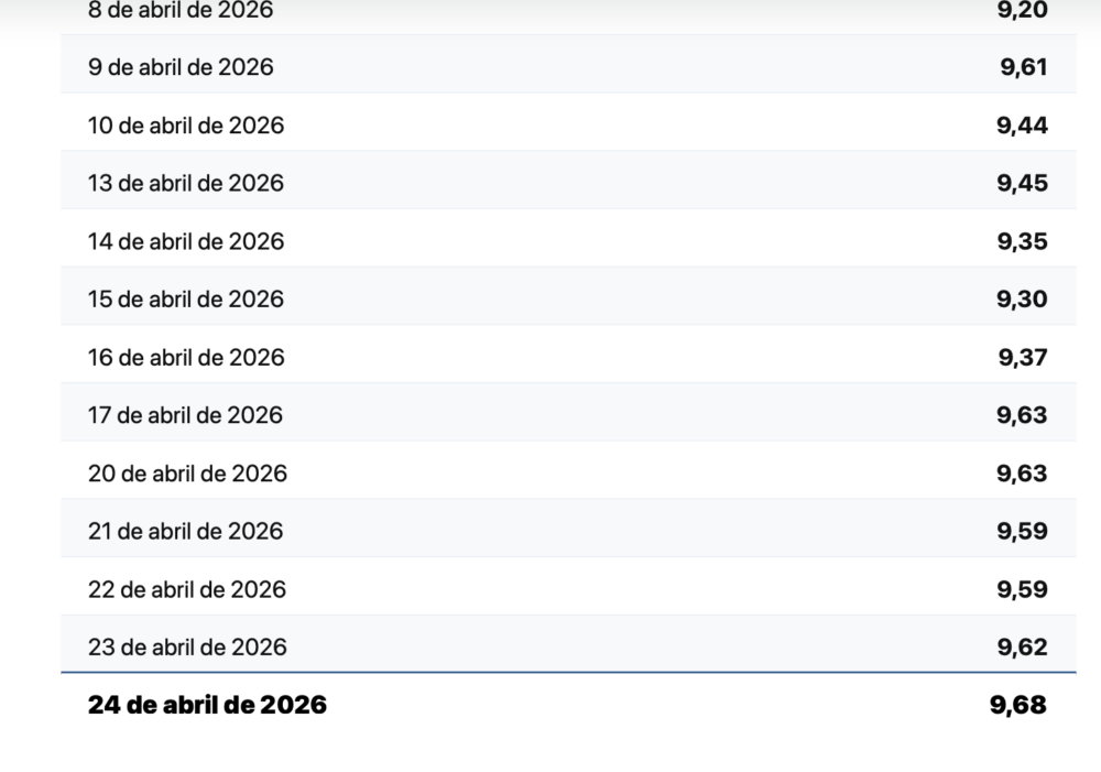 Este tipo de cambio, superior al oficial —Bs 6,86 para la compra y Bs 6,96 para la venta—, se publica desde el 1 de diciembre de 2025, cuando se cotizó en Bs 9,32.