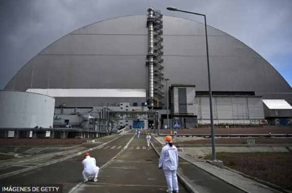 Imágenes de Getty Leyenda de la foto,El reactor 4 está encerrado en el Nuevo Confinamiento Seguro, una cúpula de acero diseñada para durar 100 años.