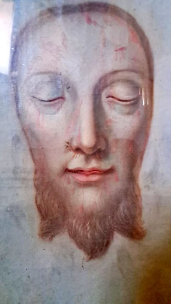 Dijo que según estudios arqueológicos, esta es la faz o rostro de Cristo copiada de la verdadera faz de la Sábana Santa que actualmente se conserva en Turín. “Es decir, tienen una imagen copiada con los mismos rasgos de Jesús, o la ‘vera icon’ que significa la verdadera imagen de Jesús. Esta copia es muy antigua, que proviene de los siglos VII u VIII”, precisó.
