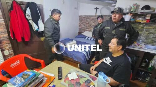 Una requisa policial en la cárcel de San Pedro de La Paz incluyó la celda del expresidente Luis Arce, donde no se encontró ningún objeto prohibido, como un celular. Tras el operativo, fue filtrada una imagen del ambiente donde guarda detención preventiva, que está equipado con un catre, al parecer un televisor, una mesa, sillas y un mesón con cocina.