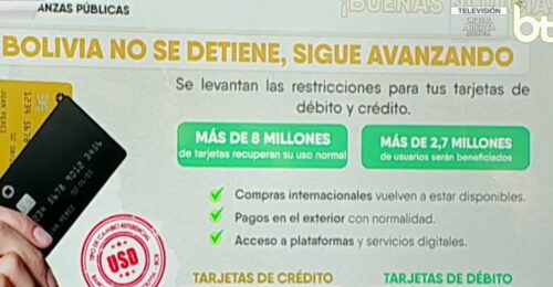 El uso de las tarjetas de crédito es irrestricta; las de débito tienen un límite de 500 dólares mensuales. El tipo de cambio para esas operaciones será el referencial que publica a diario el BCB.