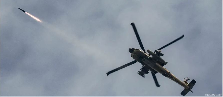 Helicóptero israelí disparando un proyectil en la frontera con Líbano.Imagen: Jalaa Marey/AFP
