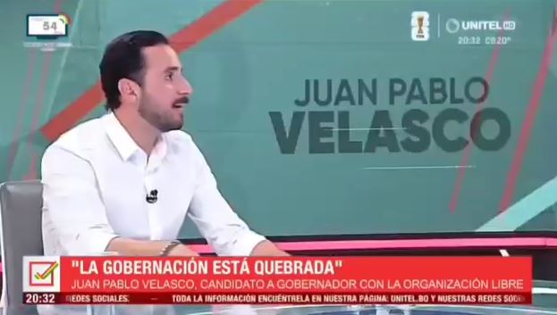 El candidato a la segunda vuelta de la Gobernación de Santa Cruz, Juan Pablo Velasco, aseguró en una entrevista que la institución departamental atraviesa una grave crisis financiera y afirmó que “está quebrada”, tras registrar pérdidas superiores a Bs 500 millones en la última gestión.