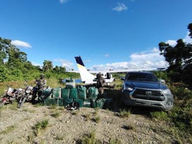 En el sitio, según precisó, se encontró una aeronave lista para operar, una camioneta sin placas, motocicletas de apoyo y al menos 15 bolsas con ladrillos de clorhidrato de cocaína. El viceministro enfatizó que estos no son hechos aislados, sino son parte de una estructura montada. “Esto no es improvisado. Es una operación estructurada, con rutas, recursos y coordinación”, afirmó.
