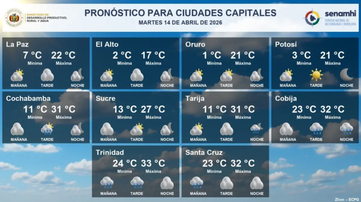 El Alto tendrá un comportamiento similar al de la sede de gobierno, con una mínima de 2°C y máxima de 17°C.