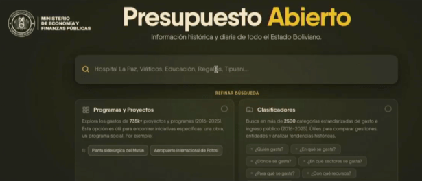 Leopoldo Avellán, representante del BID en Bolivia presente en el evento de lanzamiento, destacó la plataforma Bolivia en tiempo real, con el presupuesto reformulado 2026, como una necesidad para permitir el acceso libre a la información, democratizando el análisis económico más allá del Estado, la apertura de datos convierte la rendición de cuentas en un hábito, no en un evento.