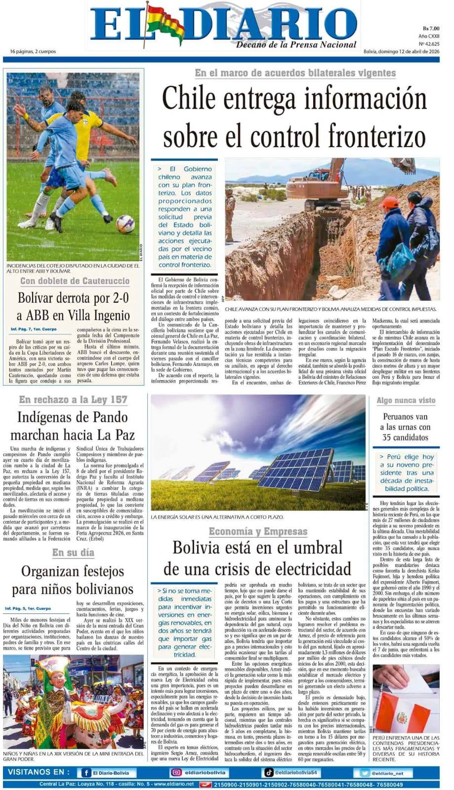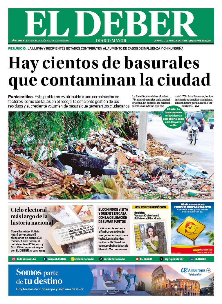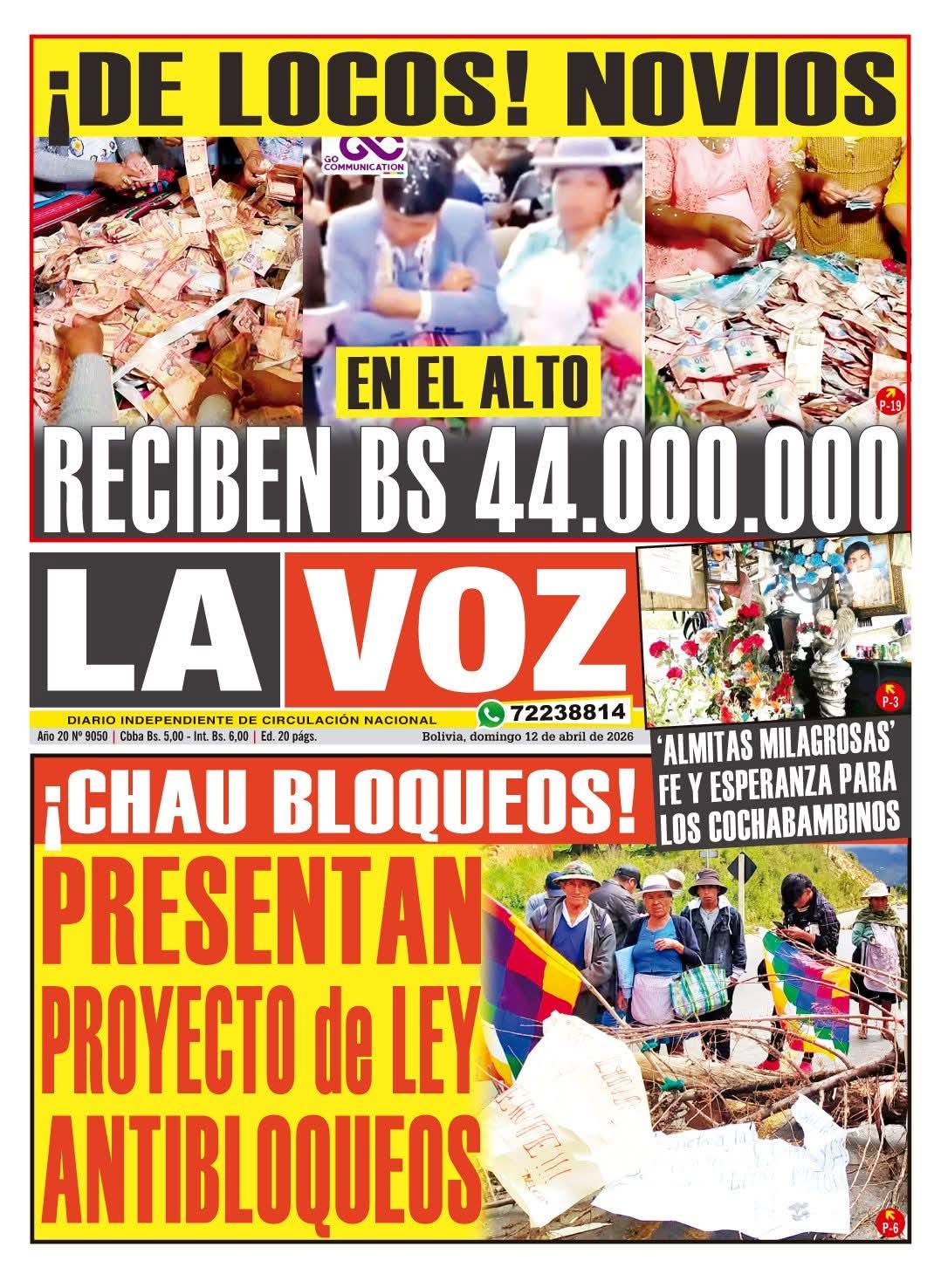Portadas de los periódicos de Bolivia del domingo 12 de abril del 2026