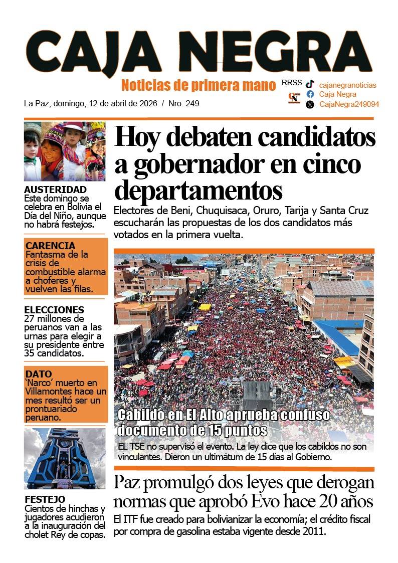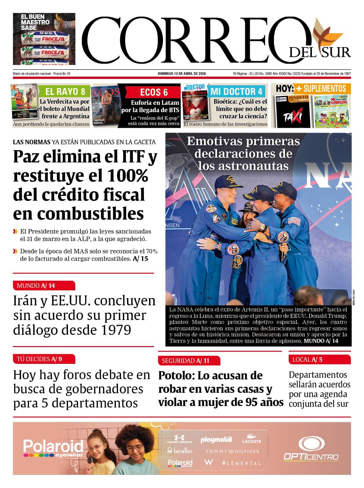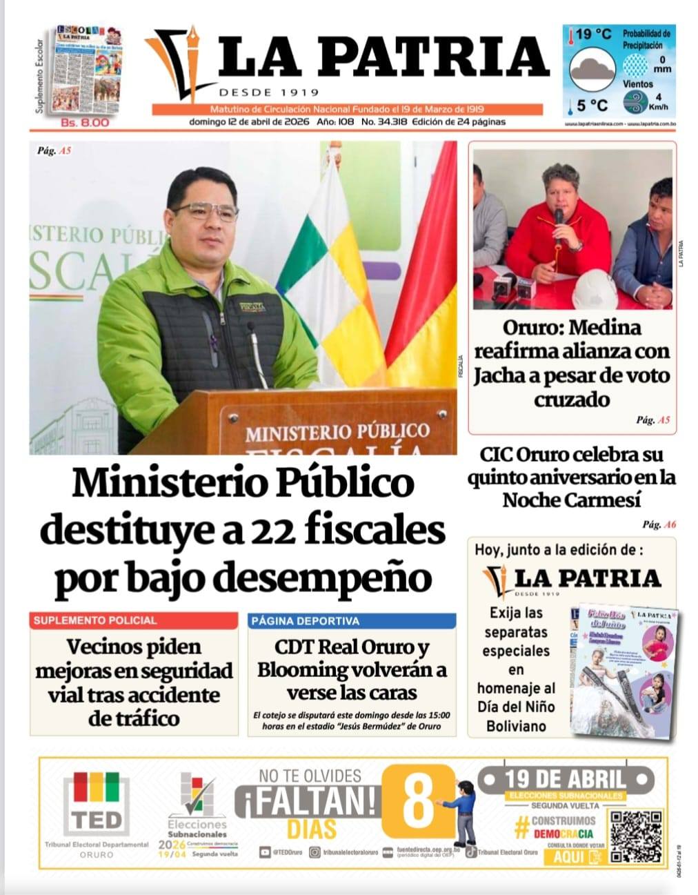 Portadas de los periódicos de Bolivia del domingo 12 de abril del 2026