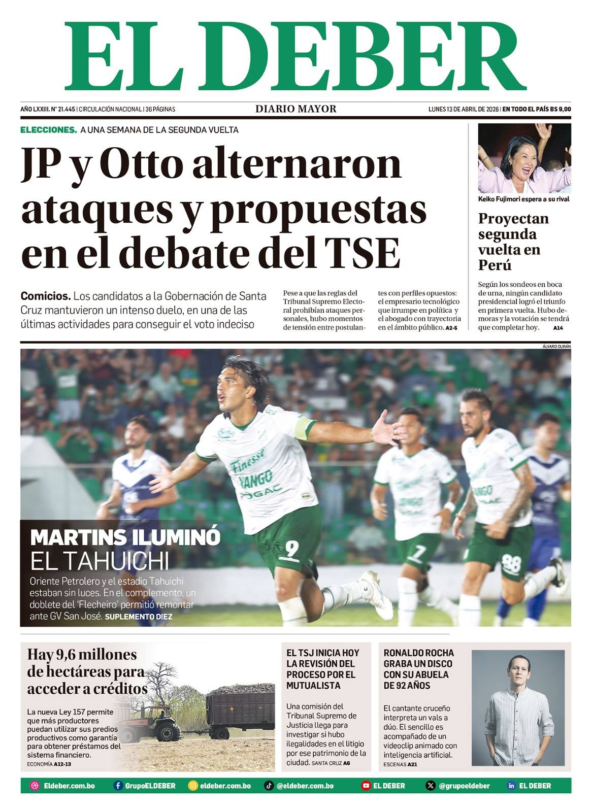Fuente: El Deber, El Día, Zona Norte, La Palabra, La Razón, La Prensa, El Diario, La Estrella del Oriente, El Mundo, La Voz, Contraparte, Andaluz, El Potosí, Correo del Sur, El País, El Periódico, El Diario, Amitel Pres, Opinión, Caja Negra, Novavox, La Patria.