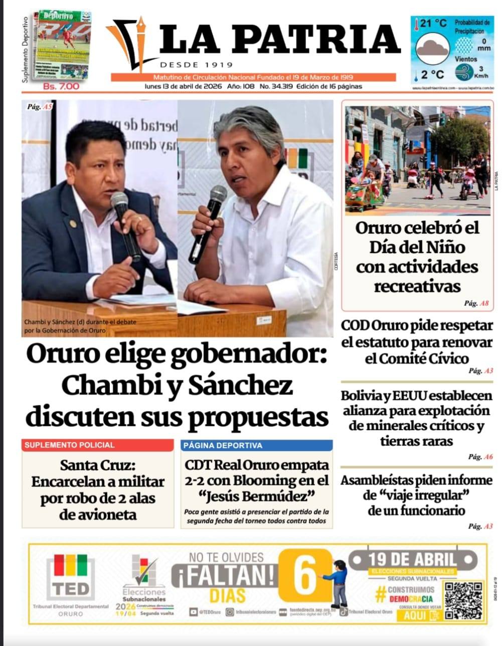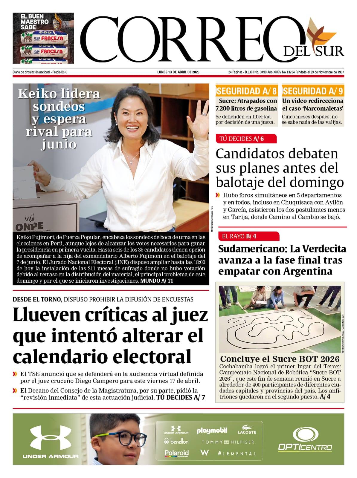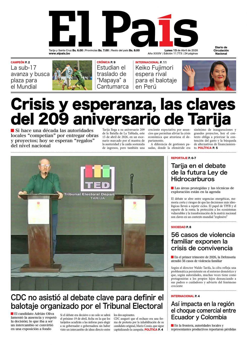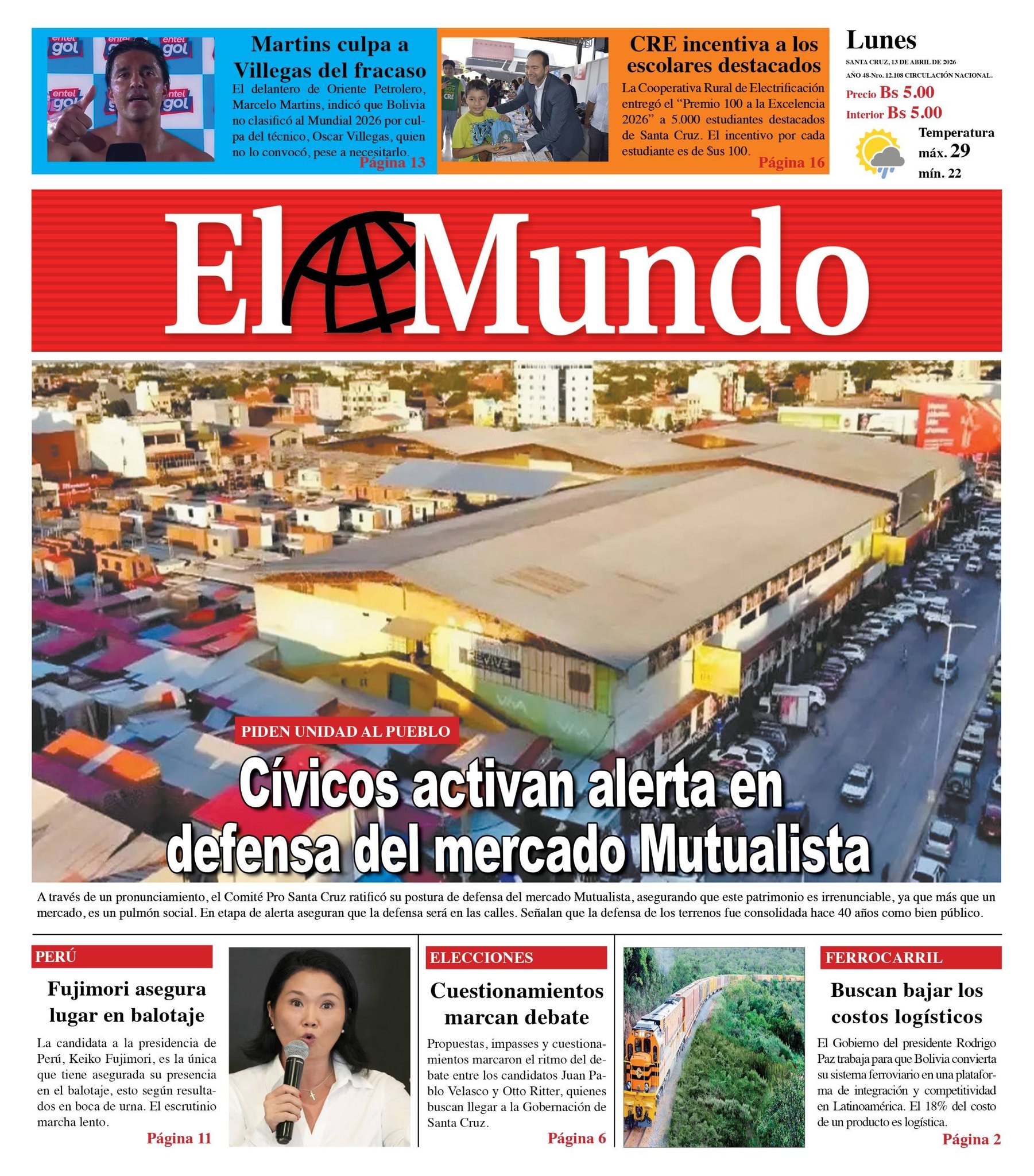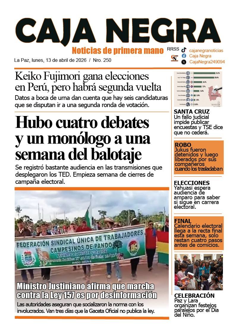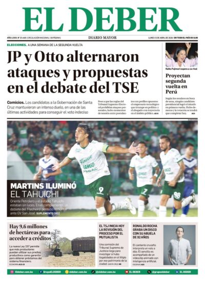 Fuente: El Deber, El Día, Zona Norte, La Palabra, La Razón, La Prensa, El Diario, La Estrella del Oriente, El Mundo, La Voz, Contraparte, Andaluz, El Potosí, Correo del Sur, El País, El Periódico, El Diario, Amitel Pres, Opinión, Caja Negra, Novavox, La Patria.