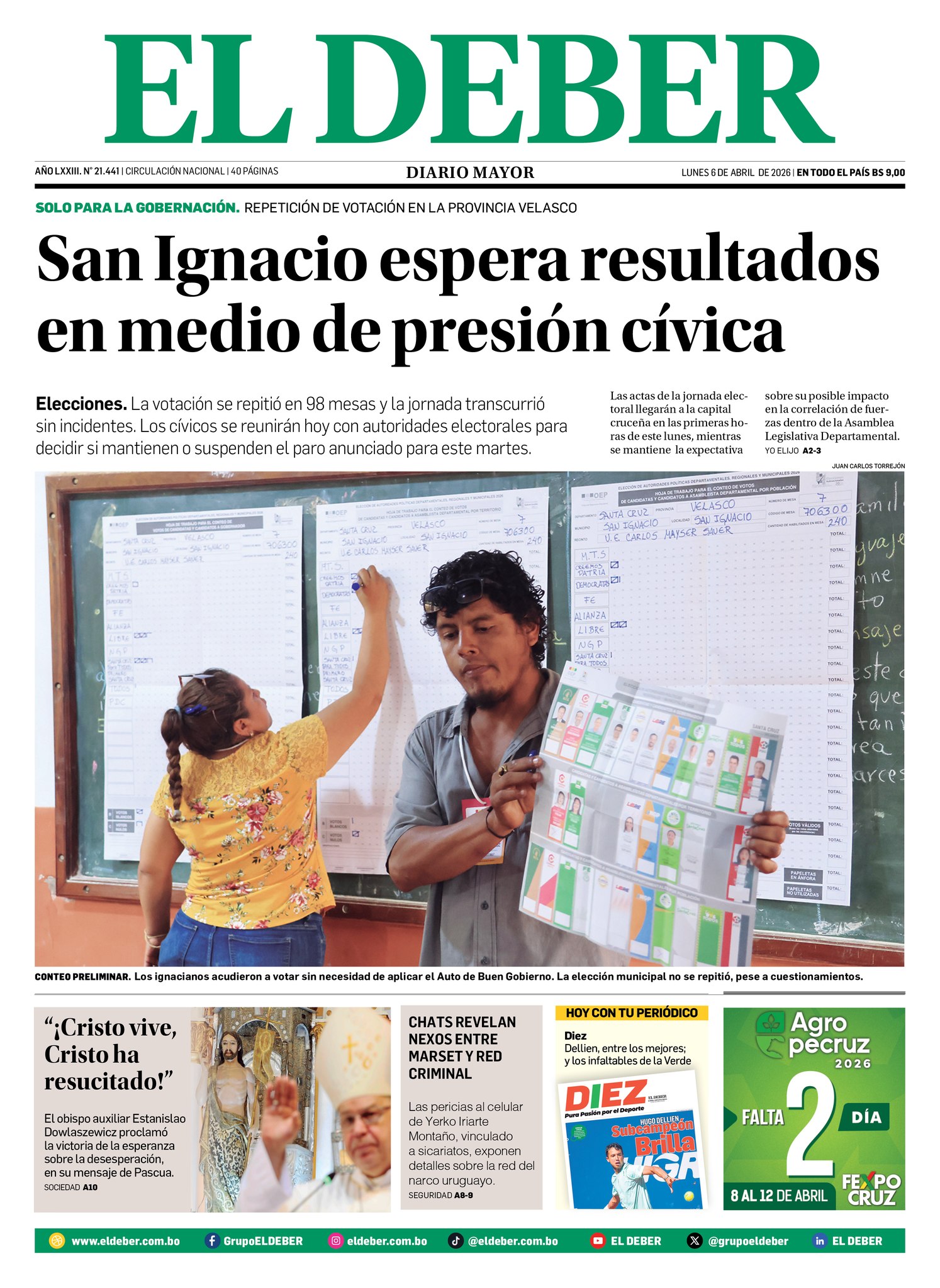 Portadas de los periódicos de Bolivia del lunes 6 de abril del 2026