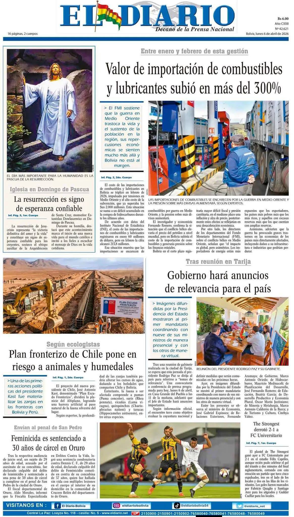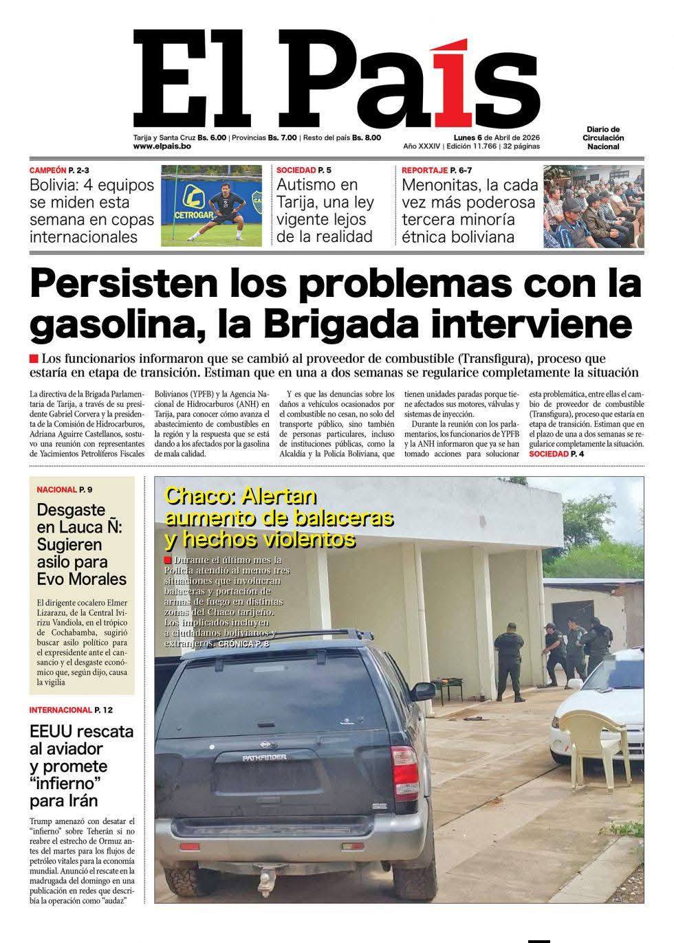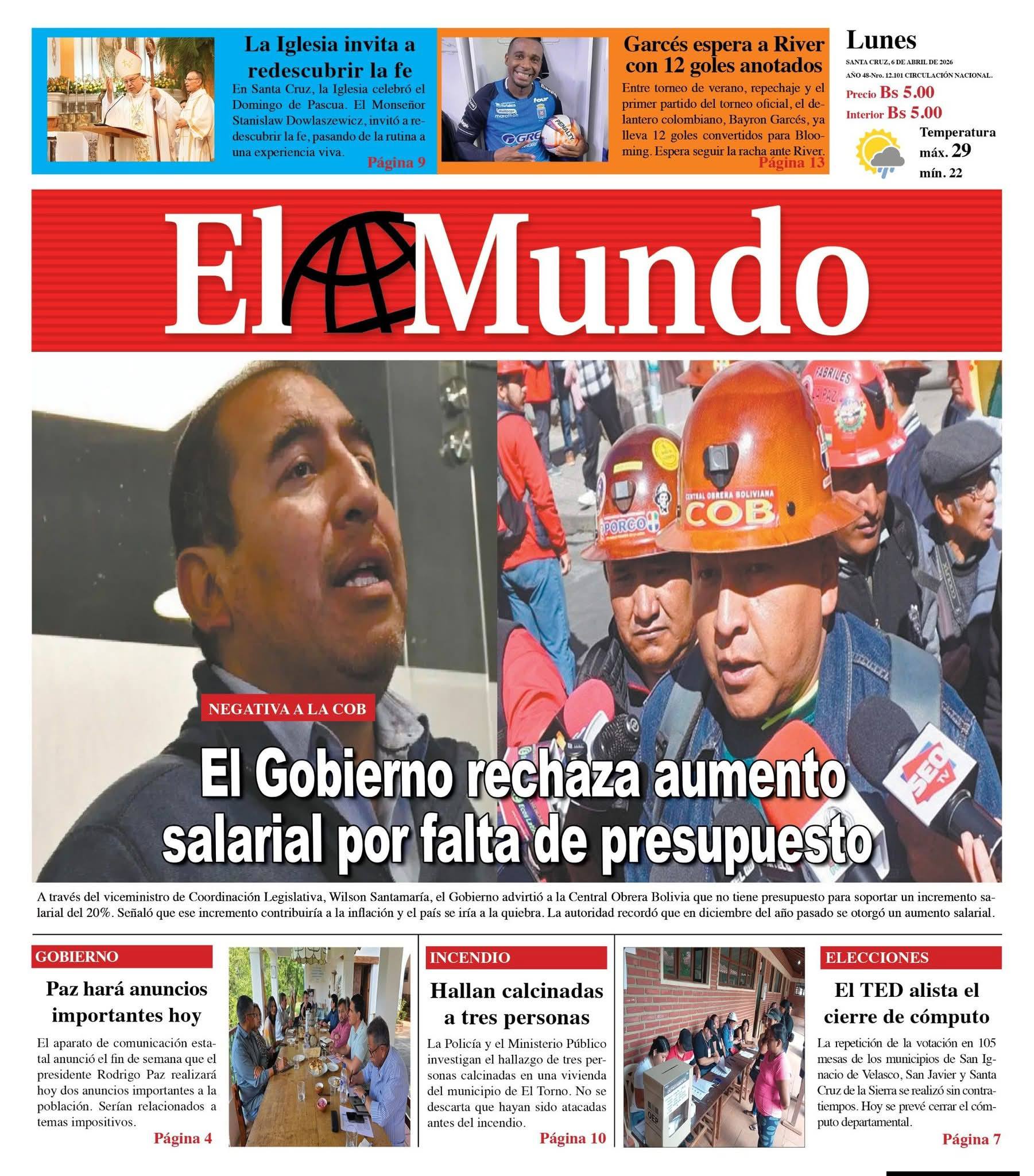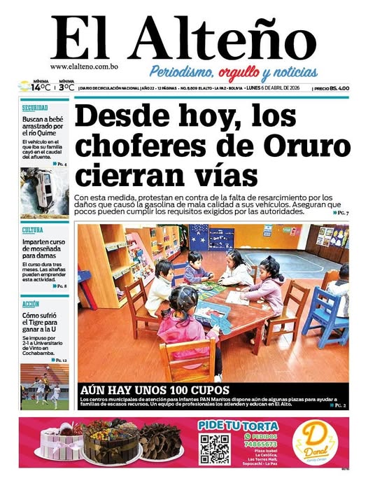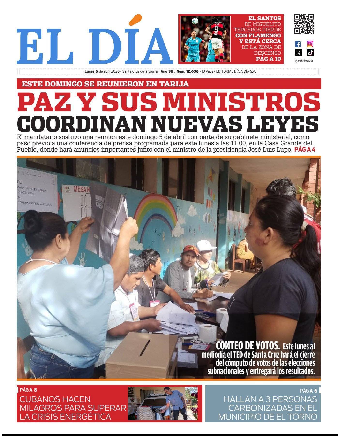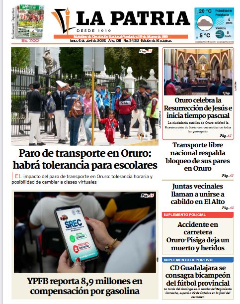 Portadas de los periódicos de Bolivia del lunes 6 de abril del 2026