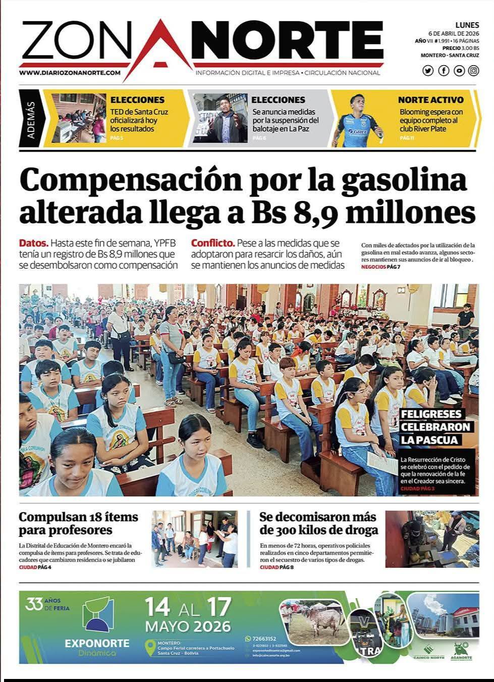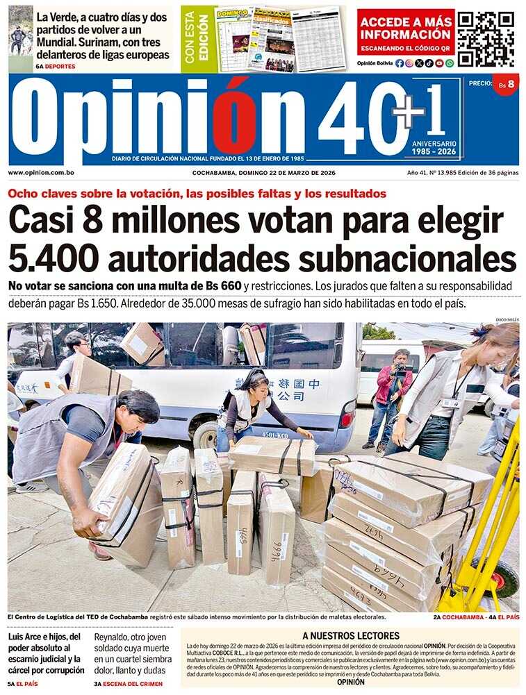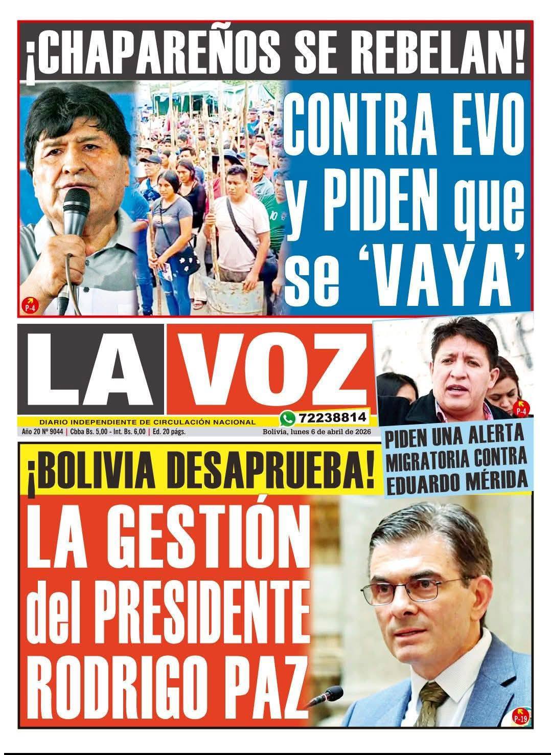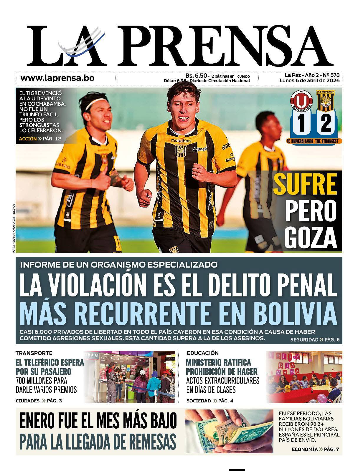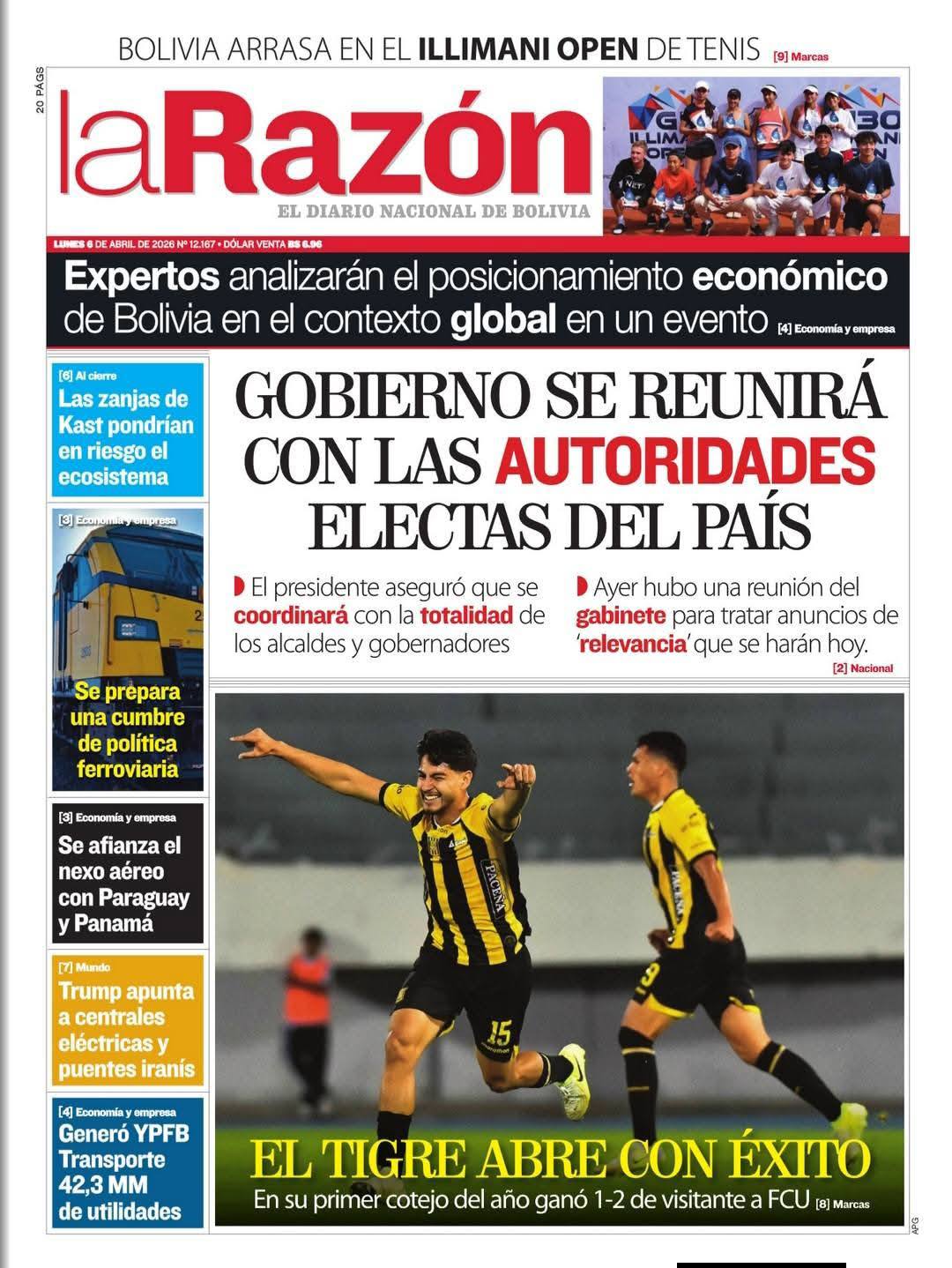 Portadas de los periódicos de Bolivia del lunes 6 de abril del 2026