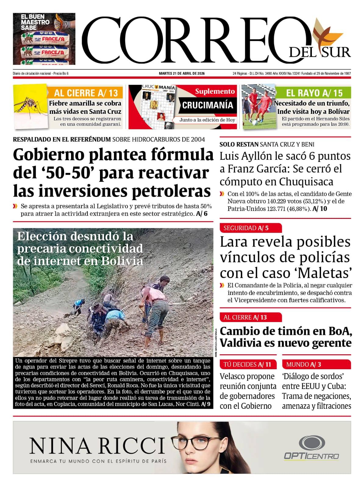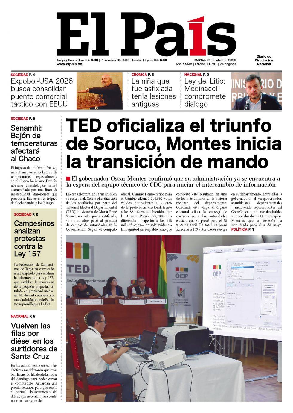 Fuente: El Deber, El Día, Zona Norte, La Palabra, La Razón, El Alteño, La Prensa, La Estrella del Oriente, El Mundo, Los Tiempos, La Voz, Contraparte, Andaluz, Correo del Sur, El País, El Periódico, El Diario, Amitel Pres, Opinión, Caja Negra, Novavox, La Patria.