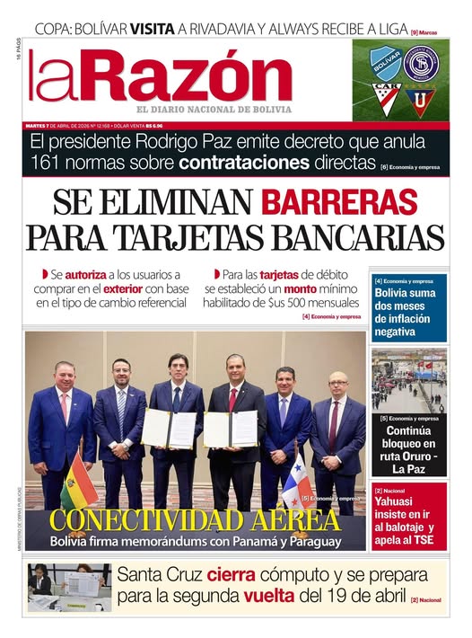 Portadas de los periódicos de Bolivia del martes 7 de abril del 2026