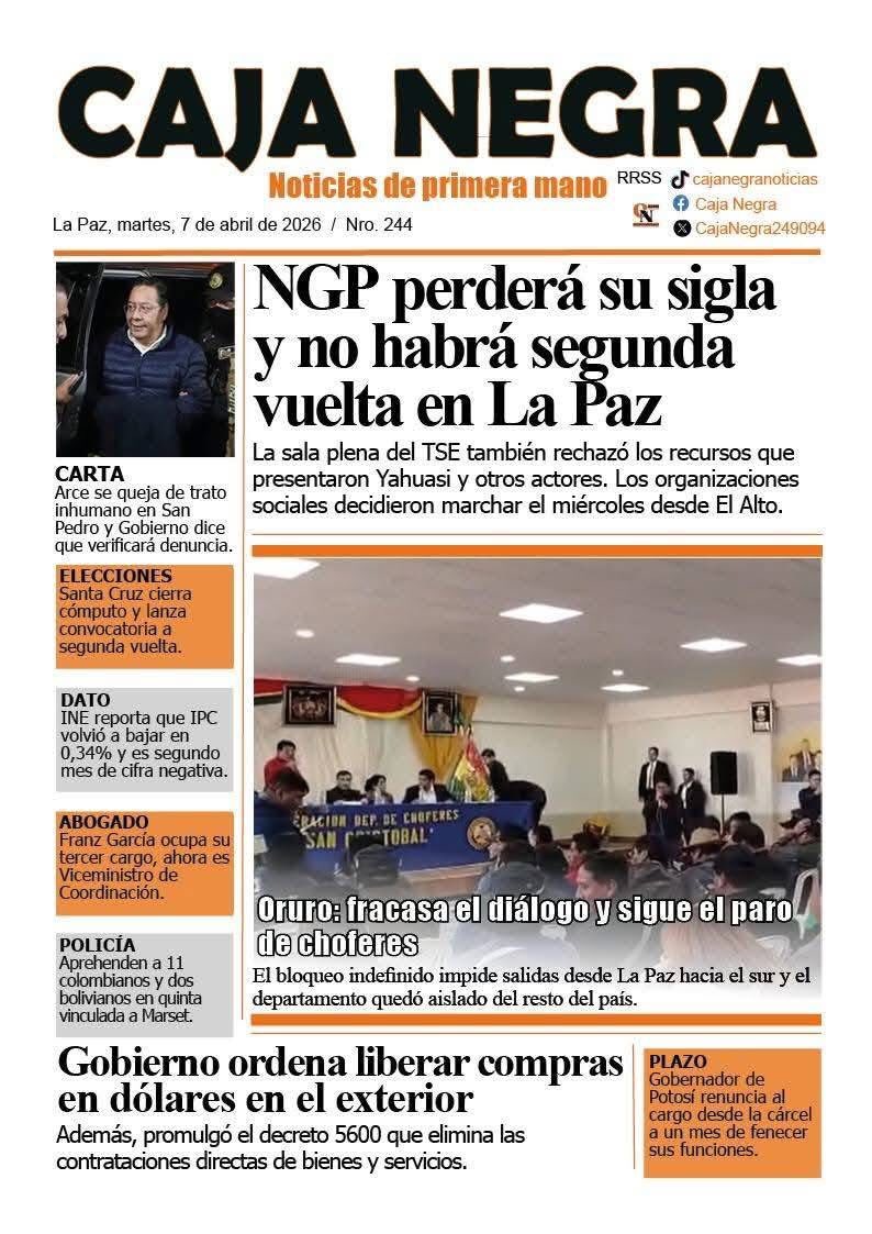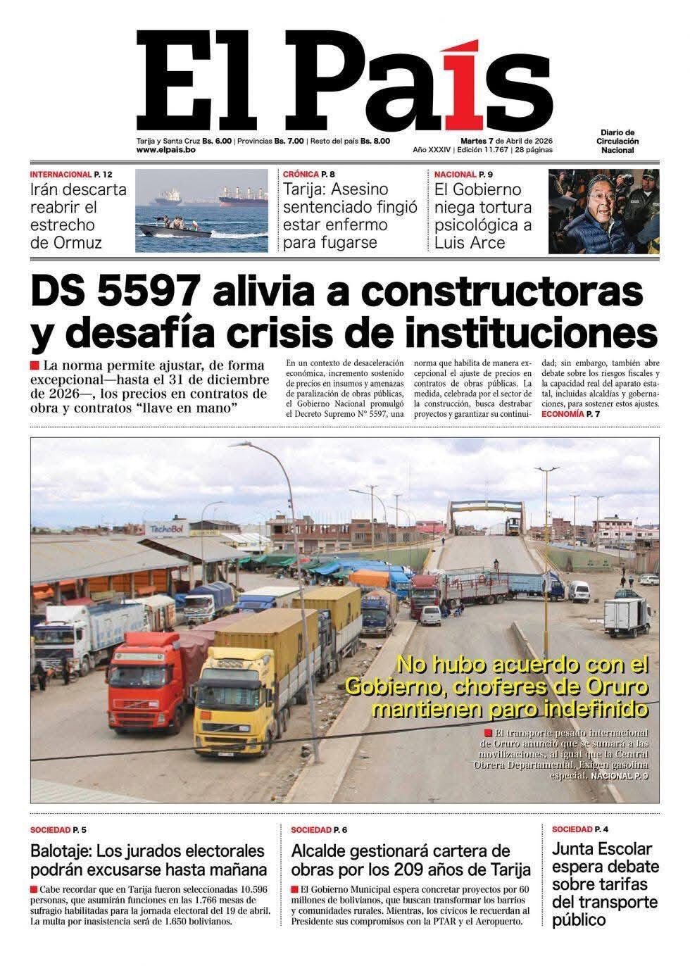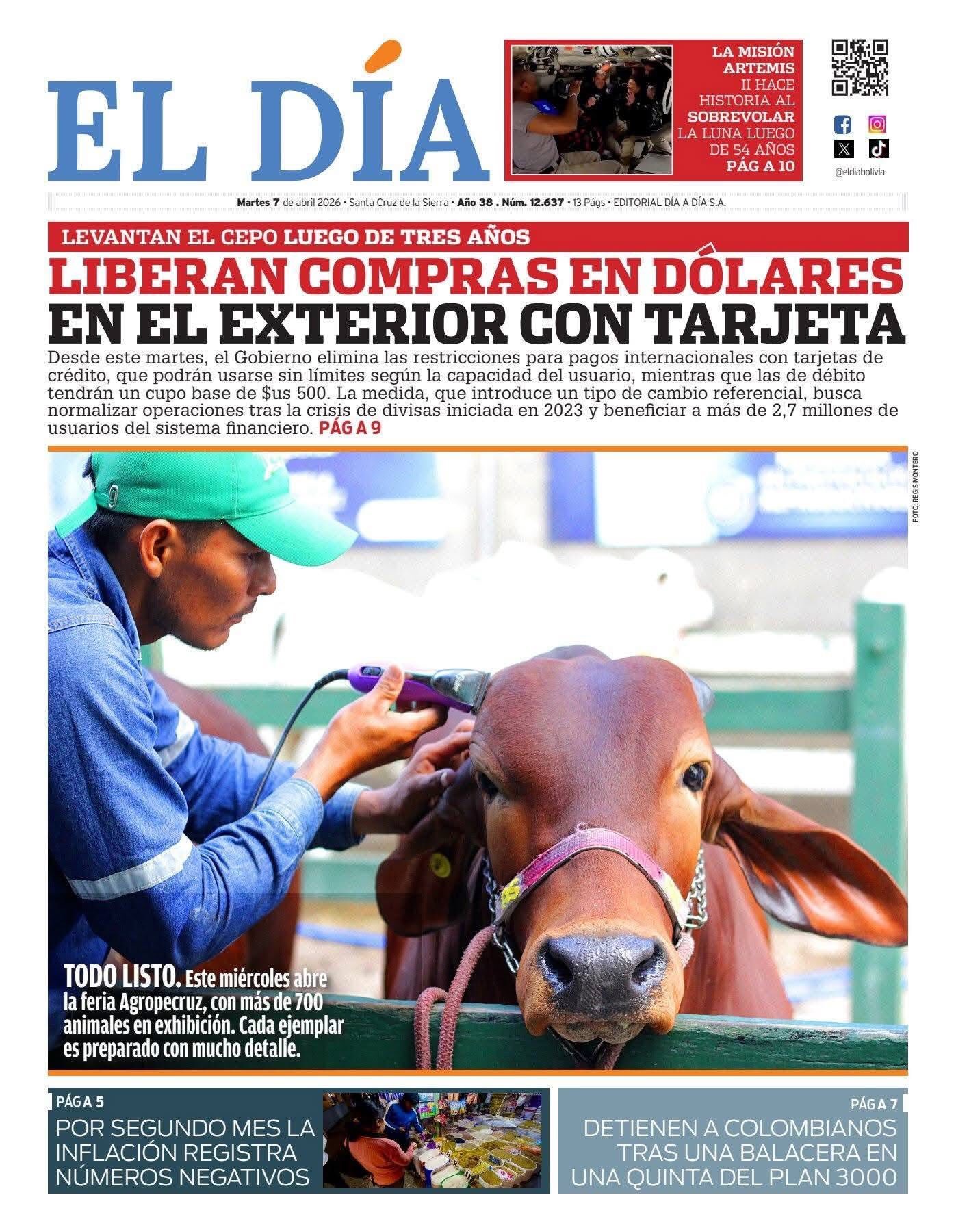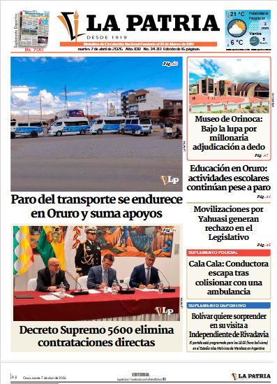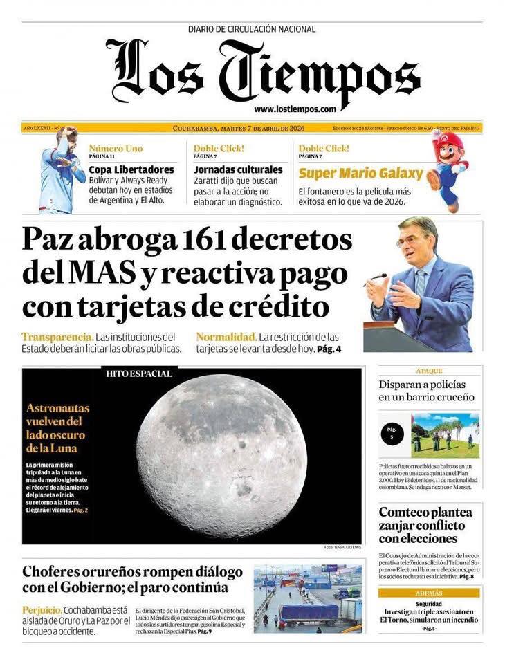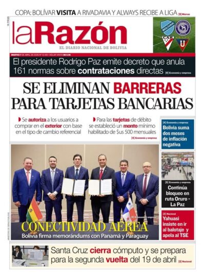 Portadas de los periódicos de Bolivia del martes 7 de abril del 2026
