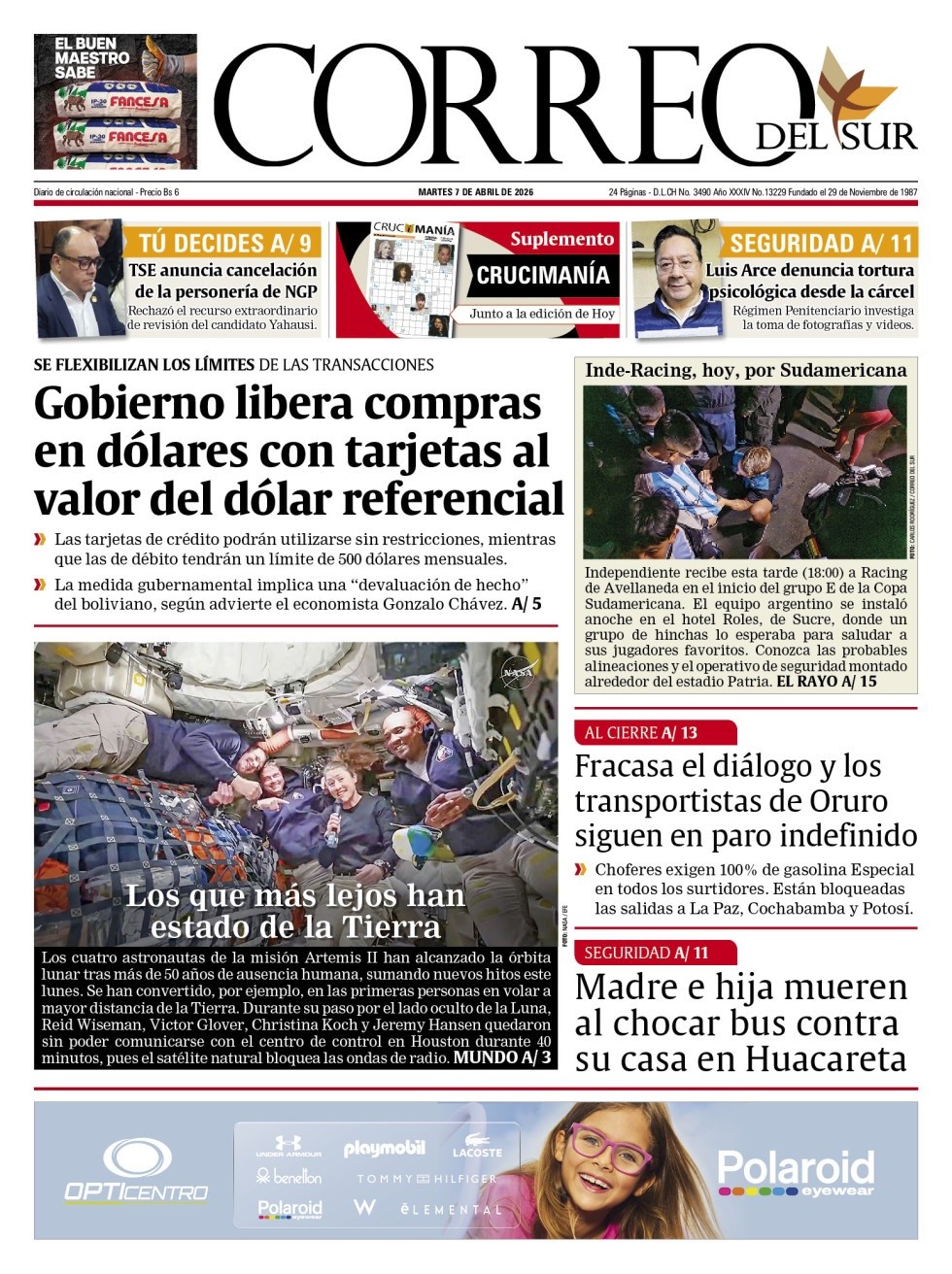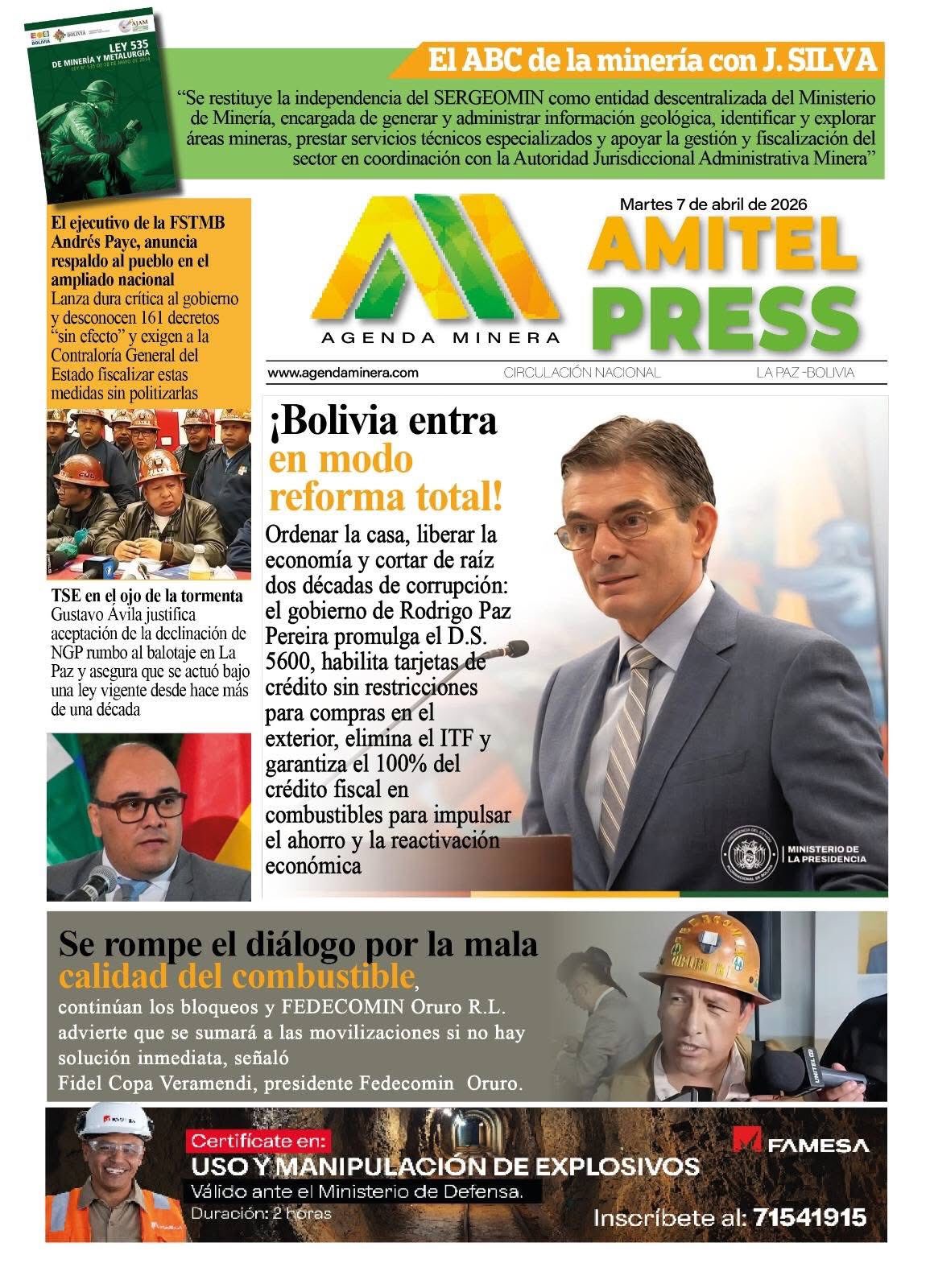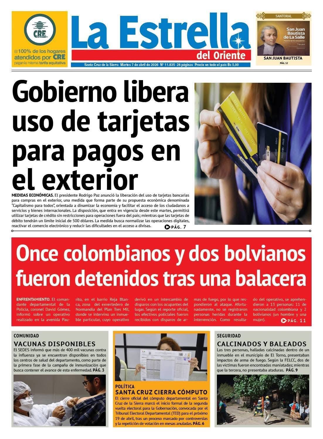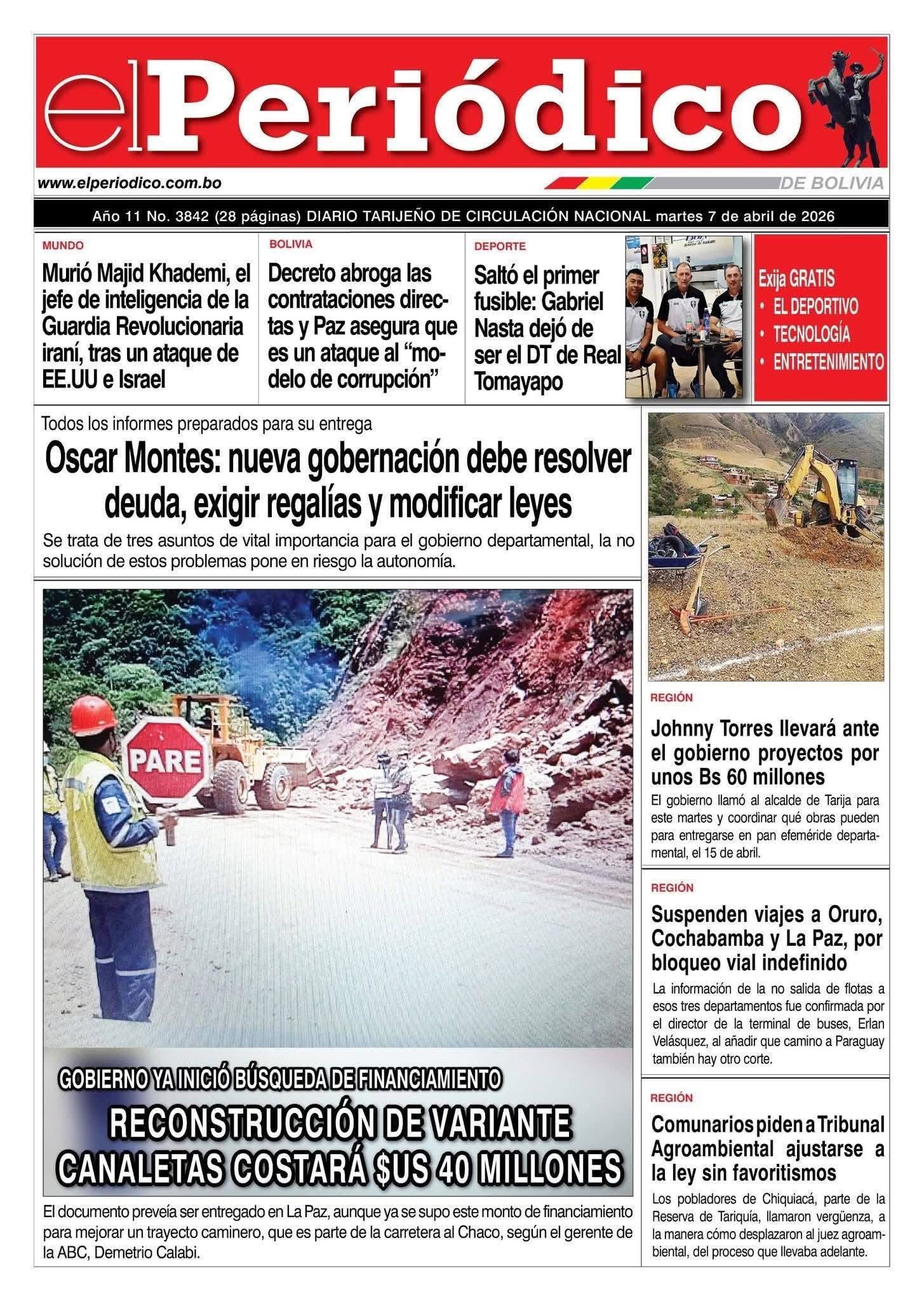 Portadas de los periódicos de Bolivia del martes 7 de abril del 2026