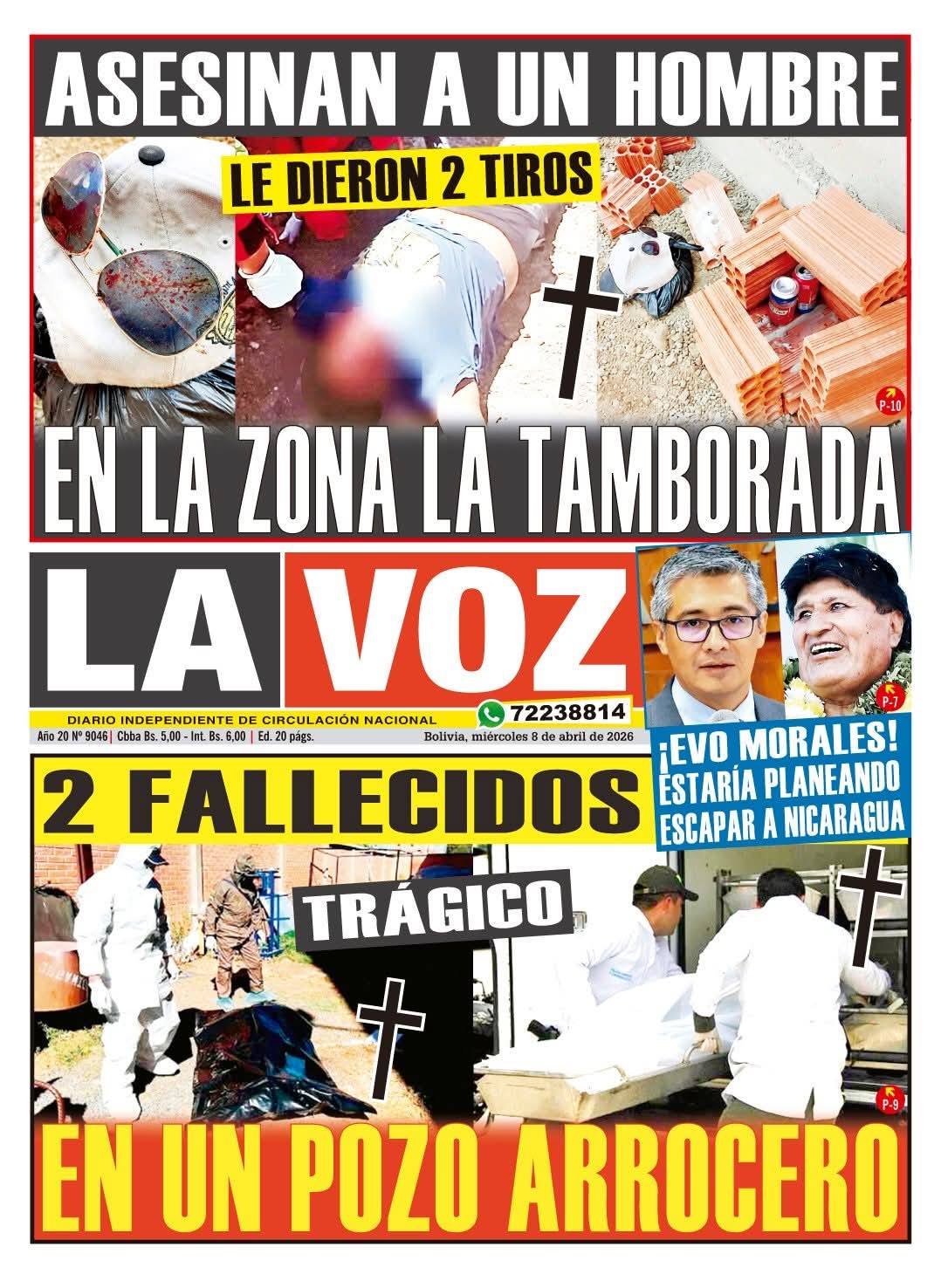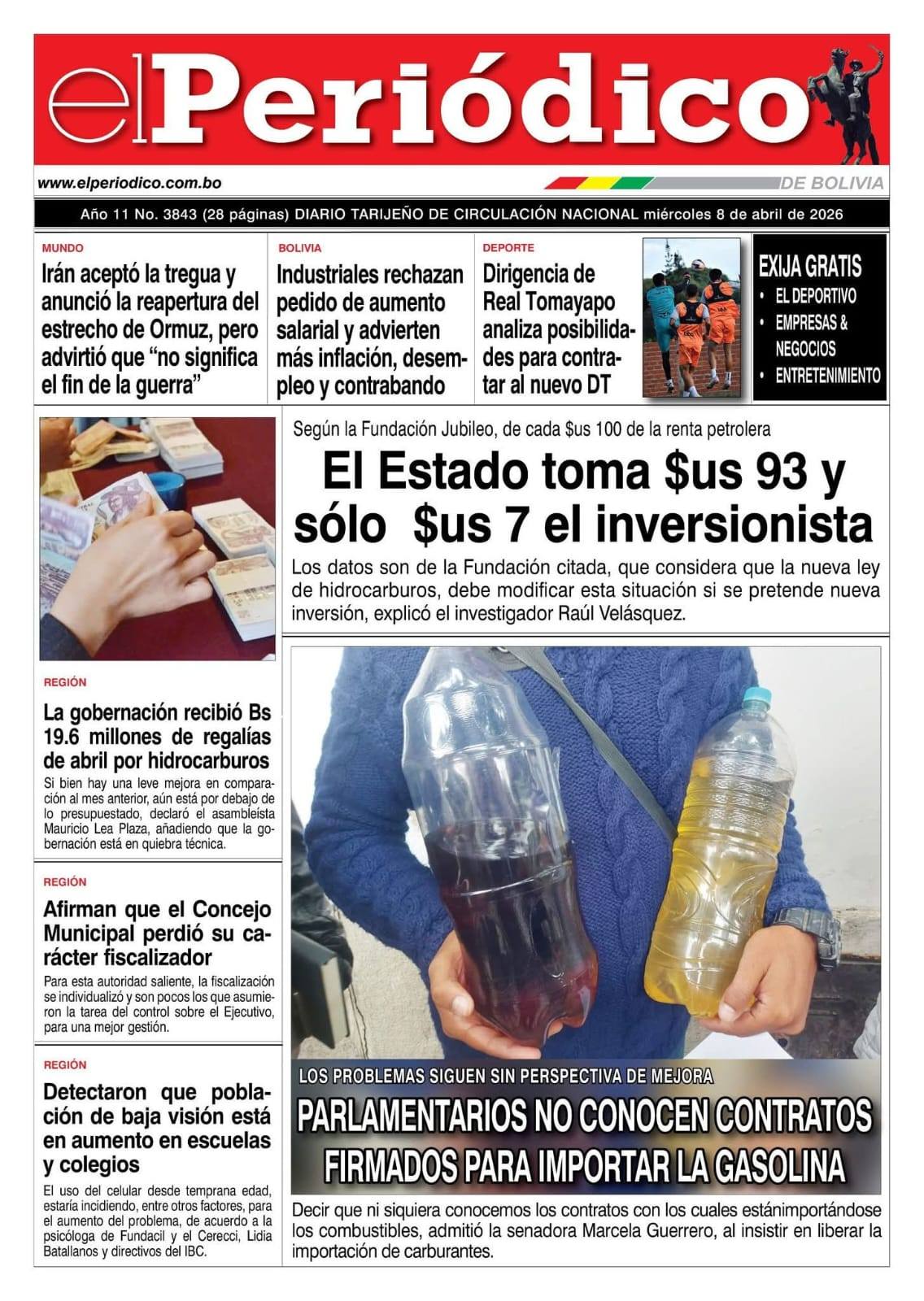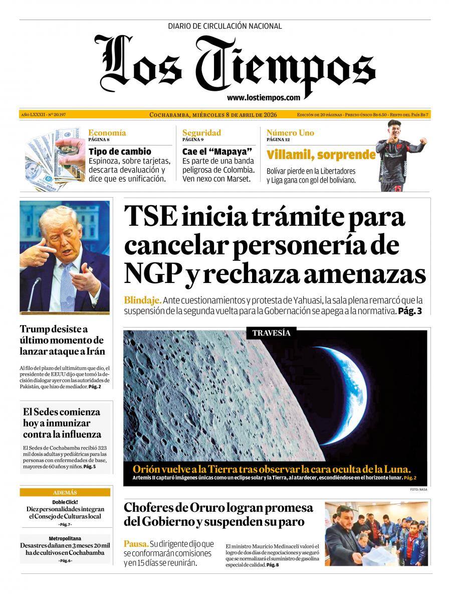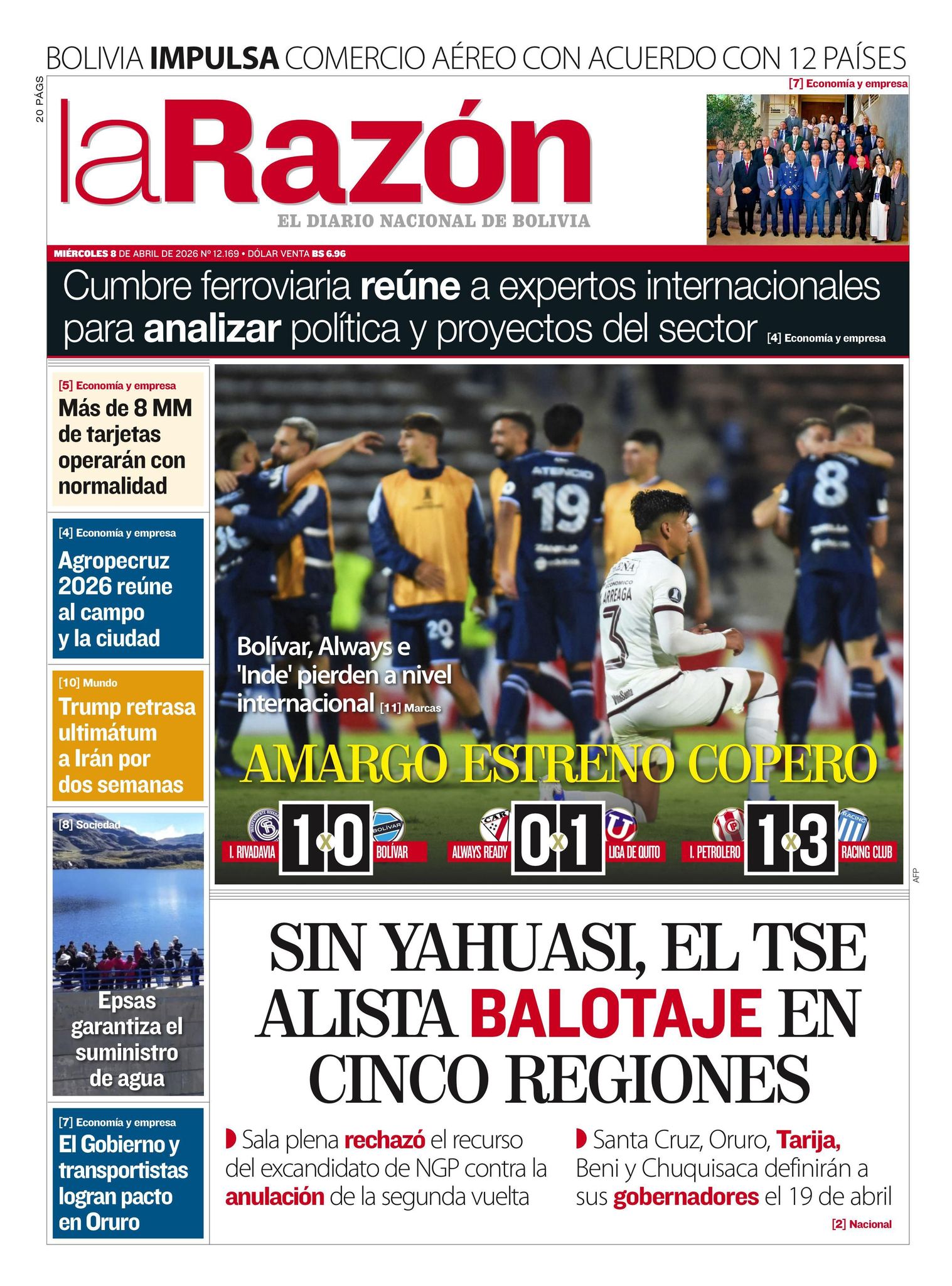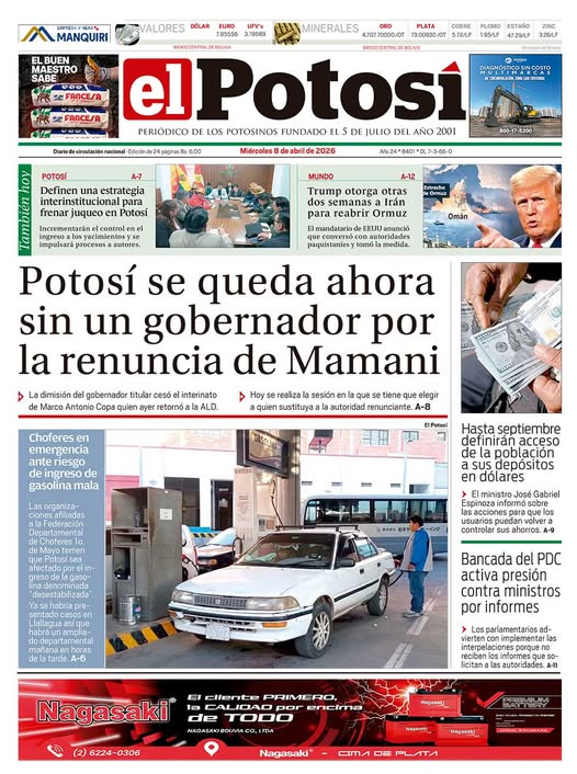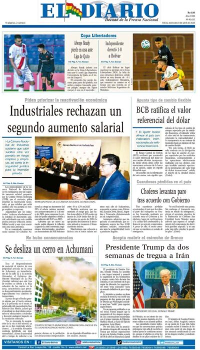 Portadas de los periódicos de Bolivia del miercoles 8 de abril del 2026