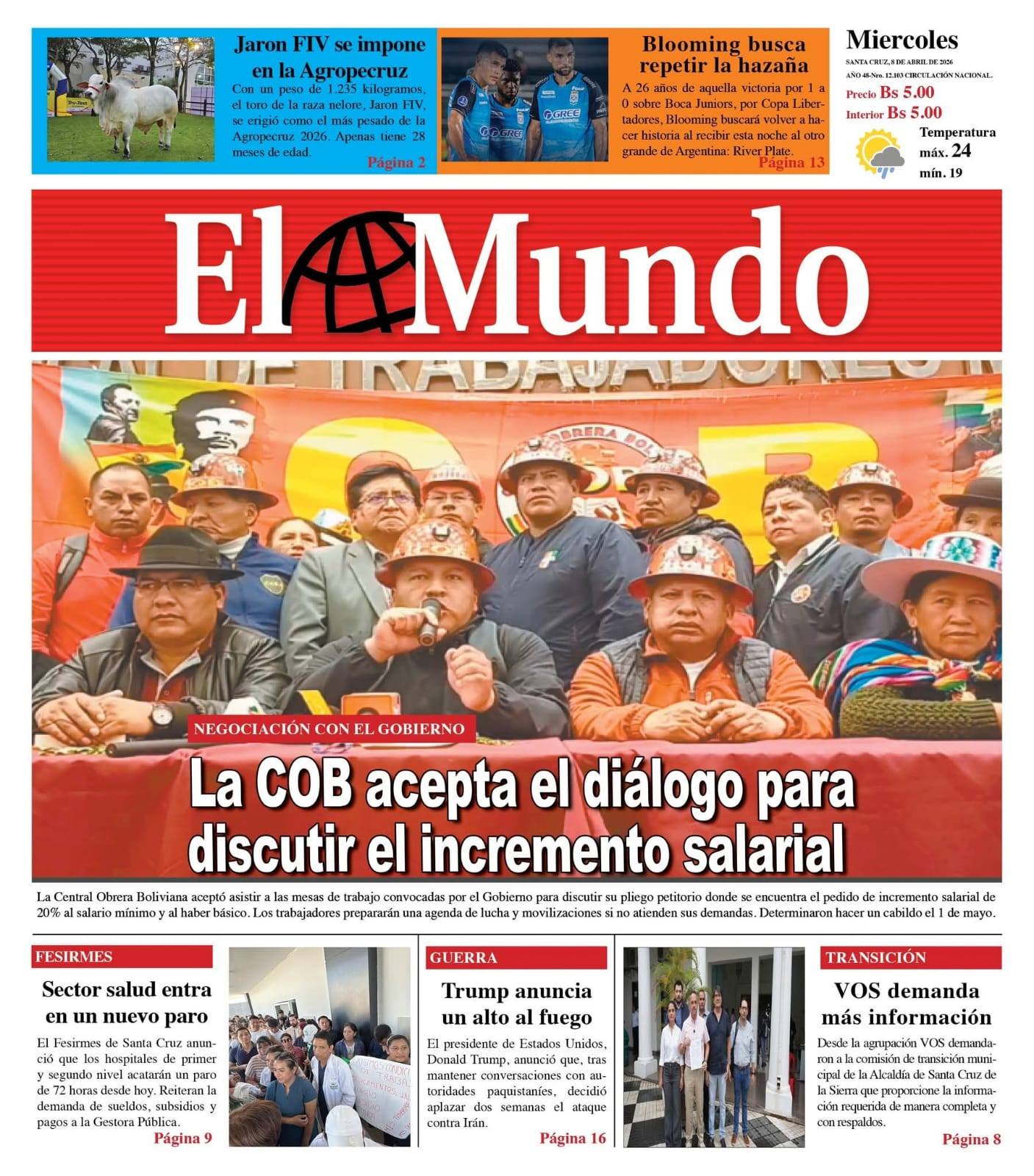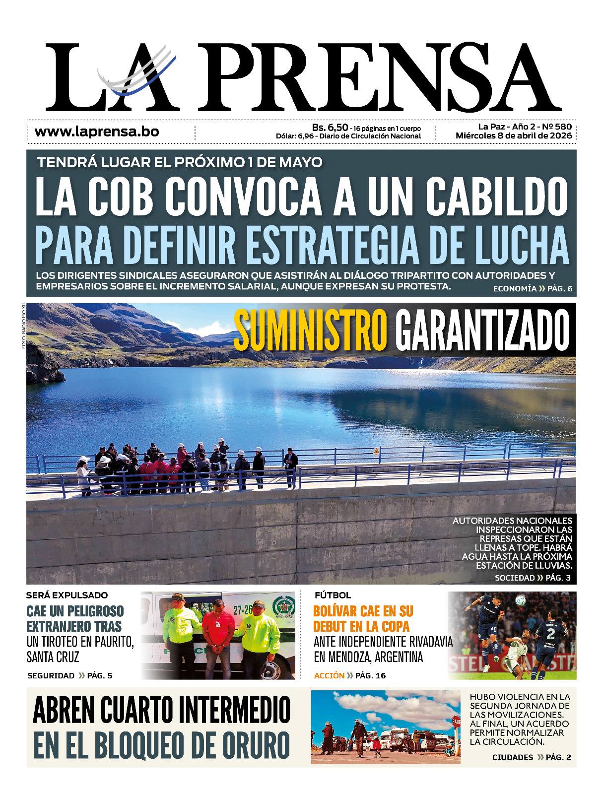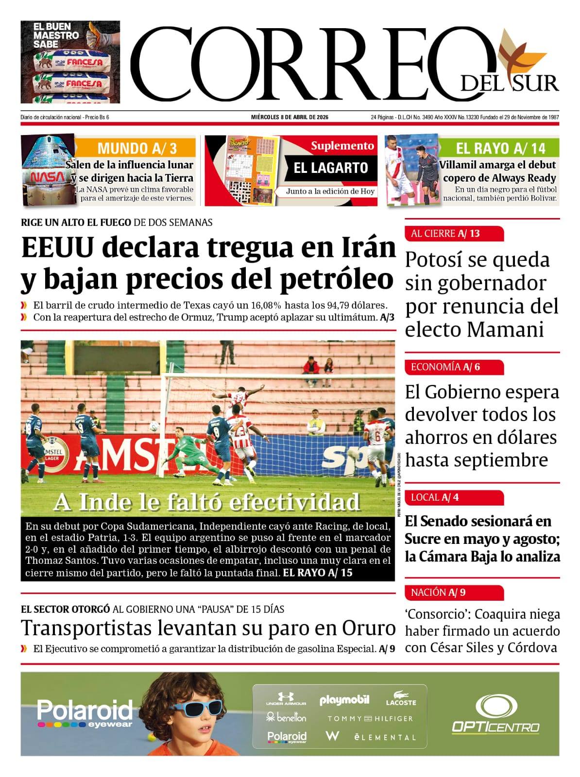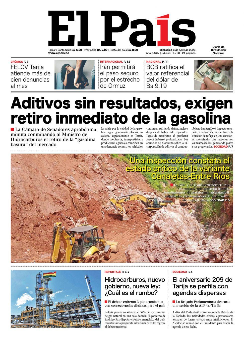 Portadas de los periódicos de Bolivia del miercoles 8 de abril del 2026