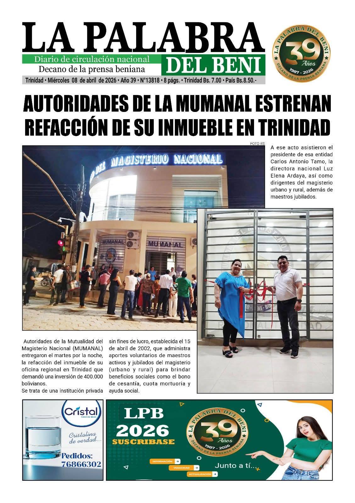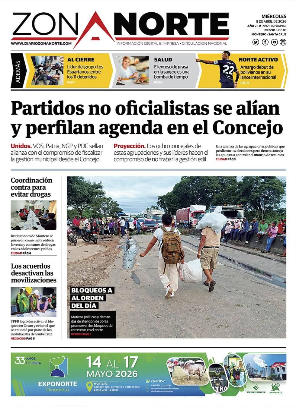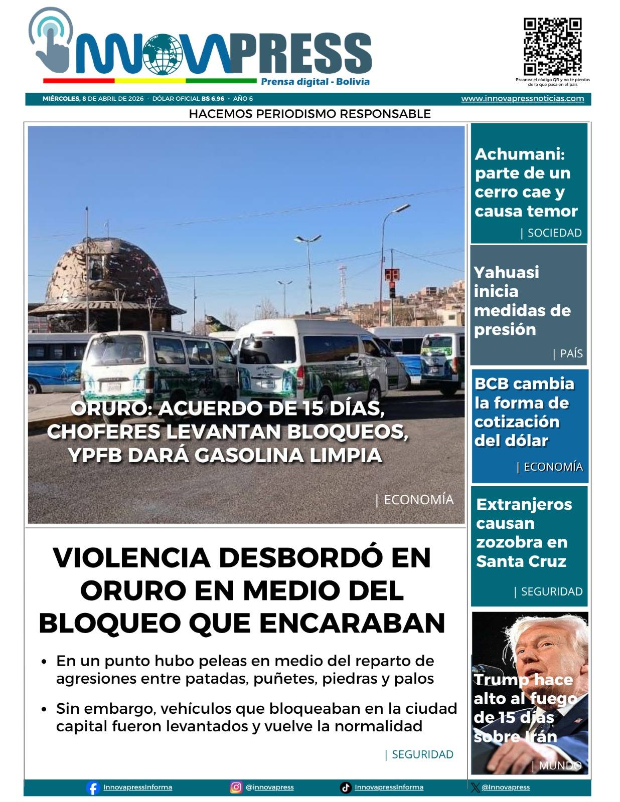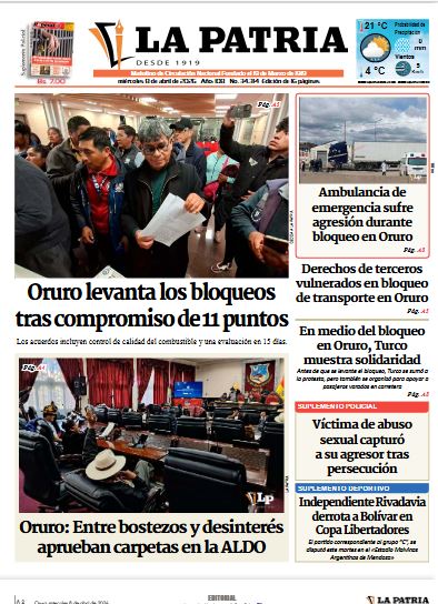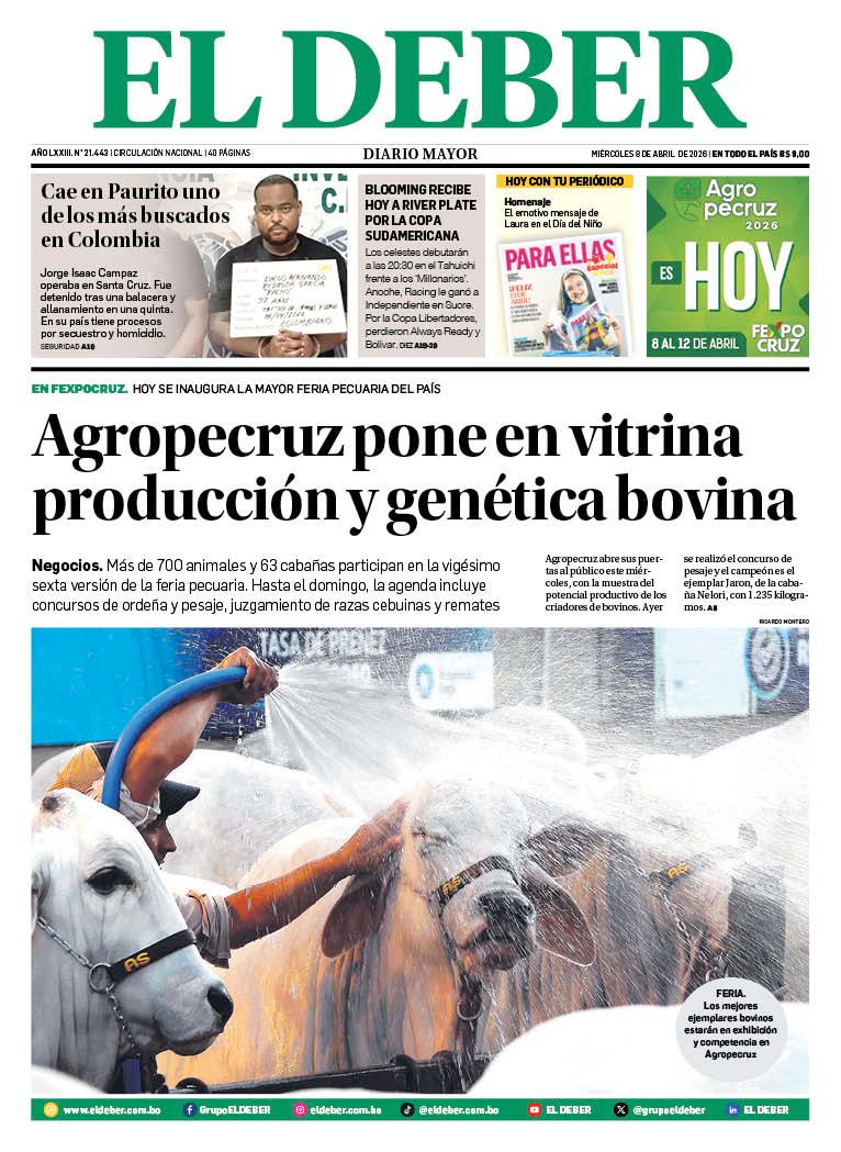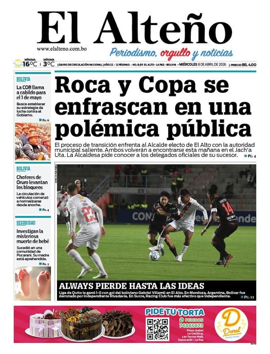 Portadas de los periódicos de Bolivia del miercoles 8 de abril del 2026