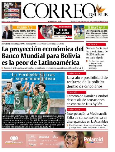 Fuente: El Deber, El Día, Zona Norte, La Palabra, La Razón, El Alteño, La Prensa, Ahora El Pueblo, La Estrella del Oriente, El Mundo, Los Tiempos, La Voz, Contraparte, Andaluz, El Potosí, Correo del Sur, El País, El Periódico, El Diario, Amitel Pres, Opinión, Caja Negra, Novavox, La Patria.