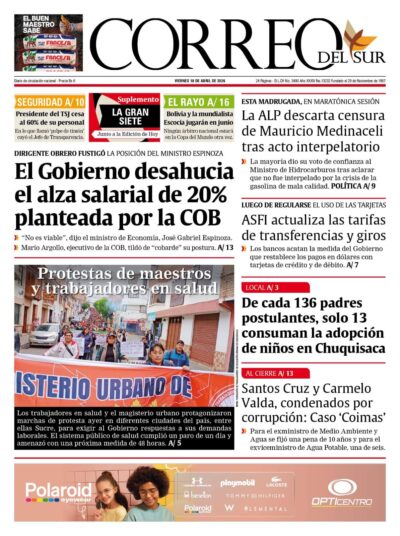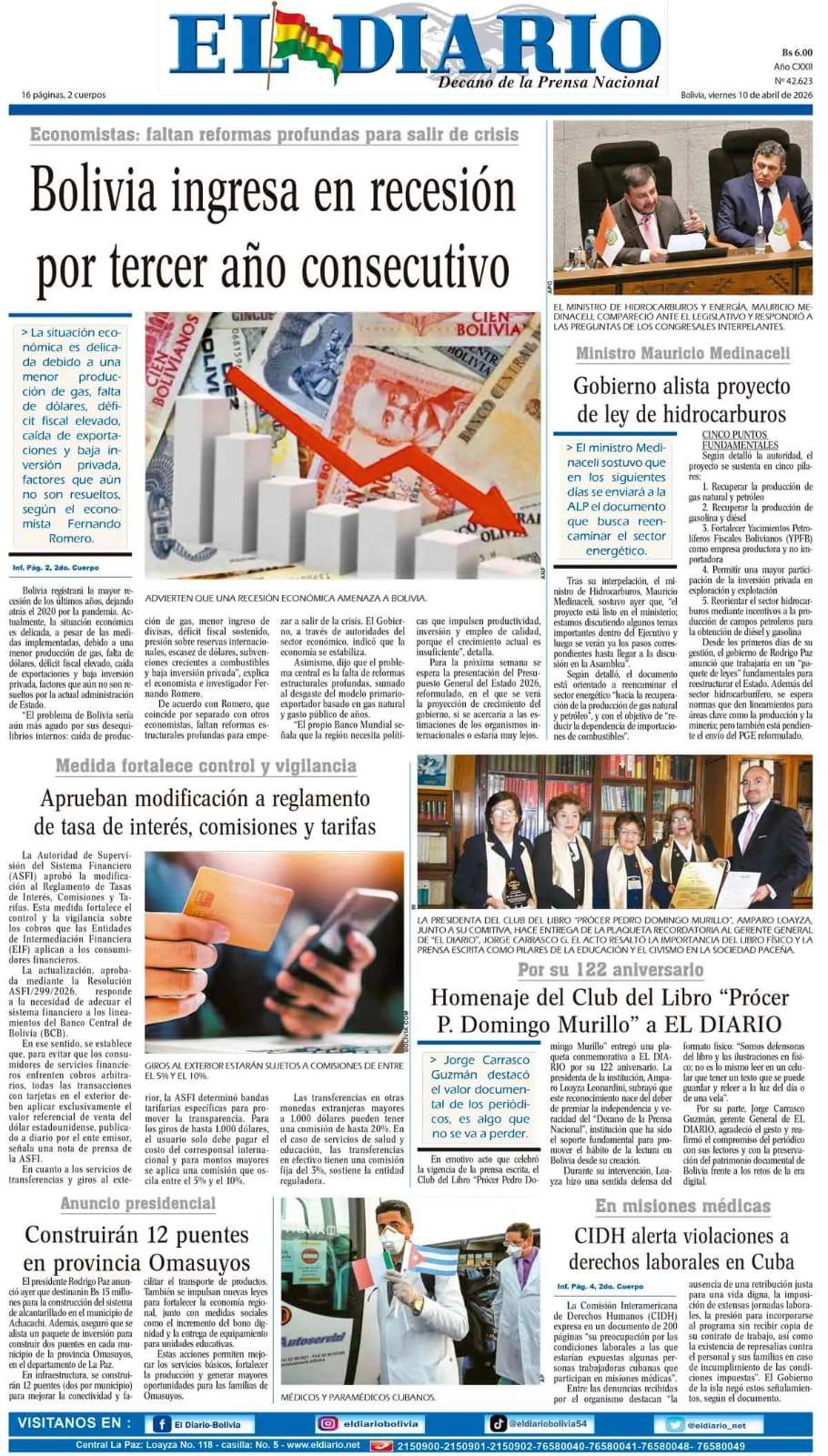 Fuente: El Deber, El Día, Zona Norte, La Palabra, La Razón, El Alteño, La Prensa, La Estrella del Oriente, El Mundo, Los Tiempos, La Voz, Contraparte, Andaluz, El Potosí, Correo del Sur, El País, El Periódico, El Diario, Amitel Pres, Opinión, Caja Negra, Novavox, La Patria.