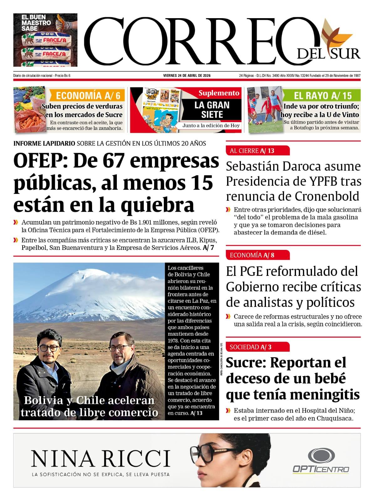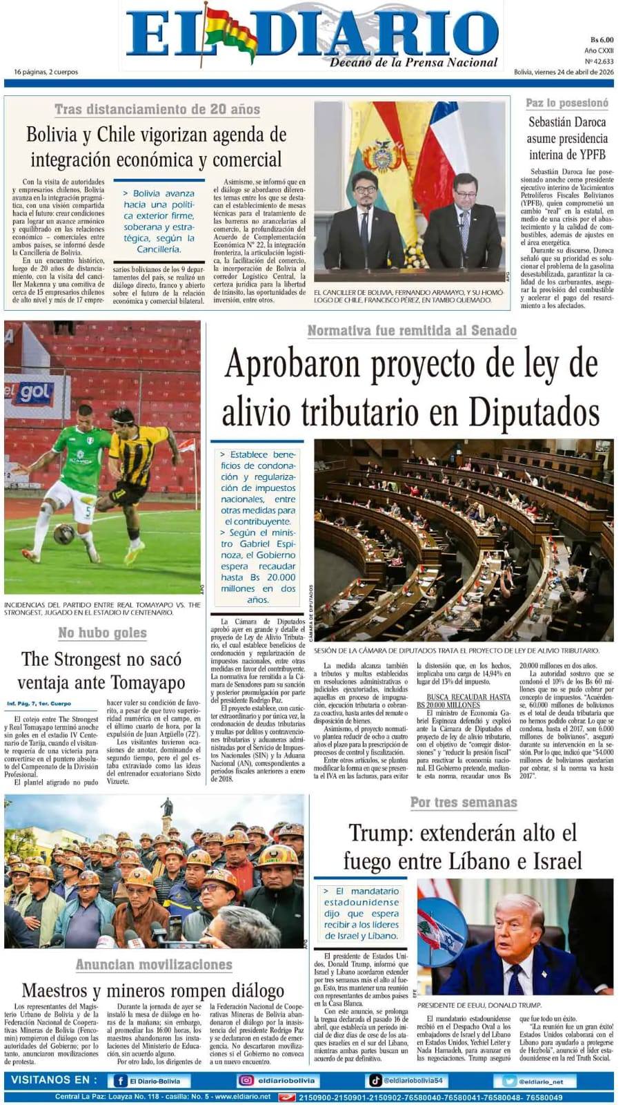 Fuente: El Deber, El Día, Zona Norte, La Palabra, La Razón, La Prensa, Ahora El Pueblo, La Estrella del Oriente, El Mundo, Los Tiempos, La Voz, Contraparte, Andaluz, Correo del Sur, El País, El Periódico, El Diario, Amitel Pres, Opinión, Caja Negra, Novavox, La Patria.