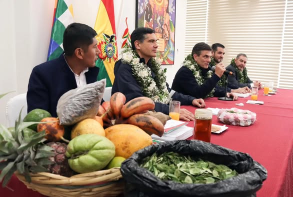 “Es momento de dejar de usar el tema de la coca políticamente para empezar a gestionarlo de forma pragmática y productiva, enfocándonos en con quiénes podemos hacer negocios reales”, afirmó Paz en encuentro celebrado en la Casa Grande del Pueblo.