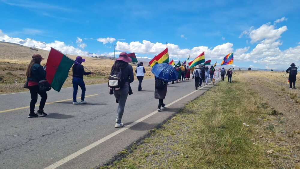 La denominada “marcha en defensa de la democracia”, con al menos 30 personas, partió este domingo desde el municipio de Huarina, de la provincia Omasuyos, tiene previsto llegar a la ciudad de La Paz este martes.