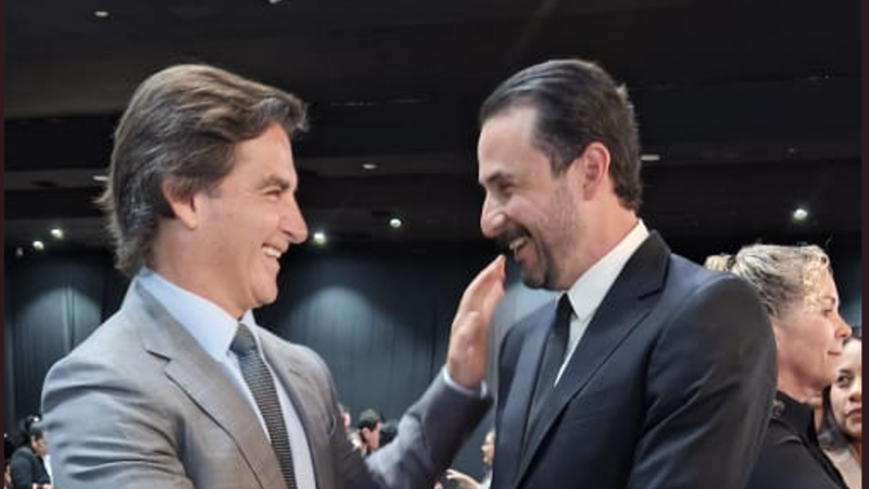 Un afectuoso saludo entre el gobernador electo de Santa Cruz, Juan Pablo Velasco y el alcalde electo de Santa Cruz de la Sierra, Manuel Saavedra se obsevó este martes durante el acto de entrega de las credenciales a las nuevas autoridades por parte del Tribunal Electoral Departamental (TED).