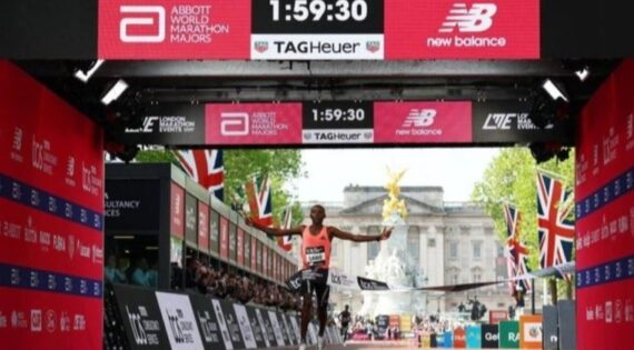El keniano Sabastian Sawe, de 29 años, cruzó la línea de meta frente al Palacio de Buckingham tras 1 hora, 59 minutos y 30 segundos, pulverizando el antiguo récord mundial de Kelvin Kiptum; 2 horas, 1 minuto y 25 segundos en abril de 2023, menos de un año antes de su fallecimiento en un accidente de coche.