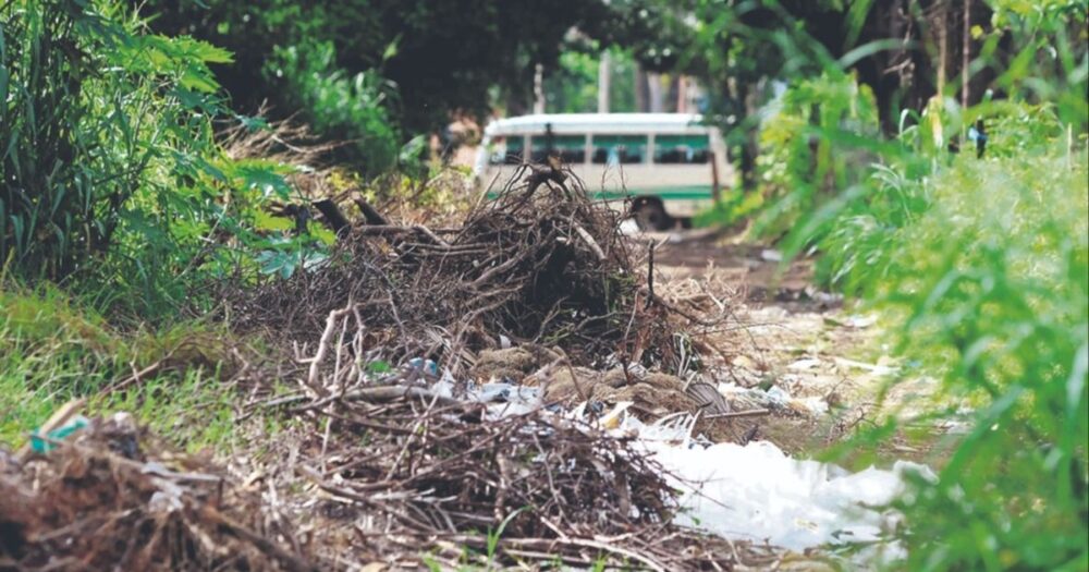 Es media mañana de un día lluvioso y, a un costado de la avenida aguas negras y malolientes escurren hacia el pavimento desde un gran basural, donde los restos de poda y basura domiciliaria se mezclan con residuos altamente contaminantes, entre los que destacan plásticos, llantas, restos de equipos de computación, alambres, fierro. Entre los desperdicios saltan a la vista vasos plásticos y bañadores que almacenan agua de lluvia, donde crecen larvas de mosquito.