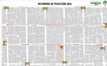 Con el objetivo de brindar seguridad a los feligreses que asistirán a las actividades Jueves y Viernes Santo, la Alcaldía cruceña informó que efectivos de la Policía Boliviana realizarán el cierre de calles aledañas a la Catedral, la plaza 24 de Septiembre e iglesias en el centro de la capital cruceña (ver imagen).