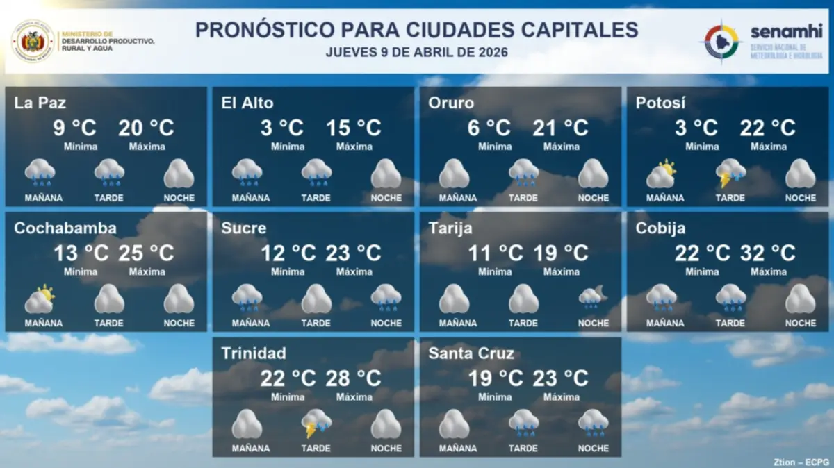 La Paz tendrá precipitaciones, con temperaturas que estarán entre 9°C y 20°C.