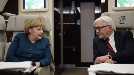 Angela Merkel y su ministro de Exteriores, Frank-Walter Steinmeier, durante un viaje emprendido el pasado 18 de diciembre. / getty